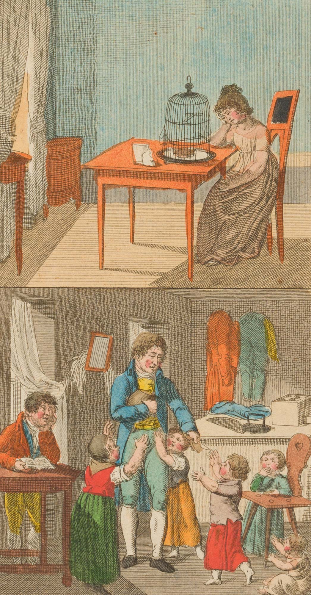 Unknown (19th century), Lit illust 2 illustrations, ‘Lisette and her bird’ a ‘Adolph’ , c 1800, c. 1800, Copper engraving