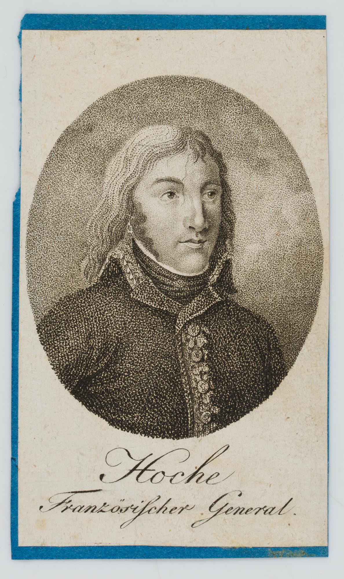- Beschreibung: Brustbild-Portrait im Oval, darunter Legende. Zu sehen ist Lazare Hoche (1768-1797), ein französischer Général de division der Revolutionszeit.