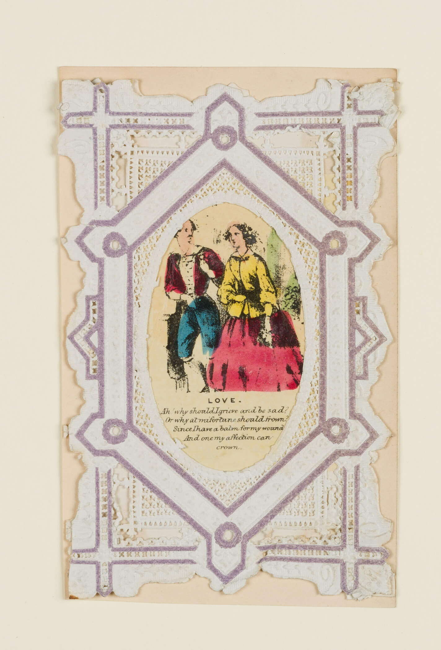 - Description: Lovers and verses in a punched, embossed drawing frame
