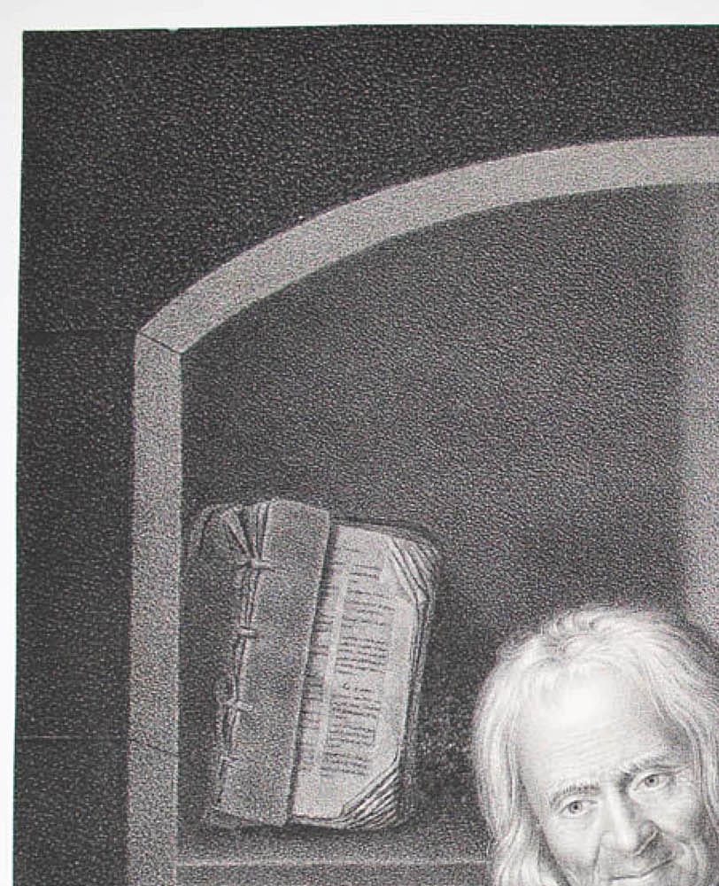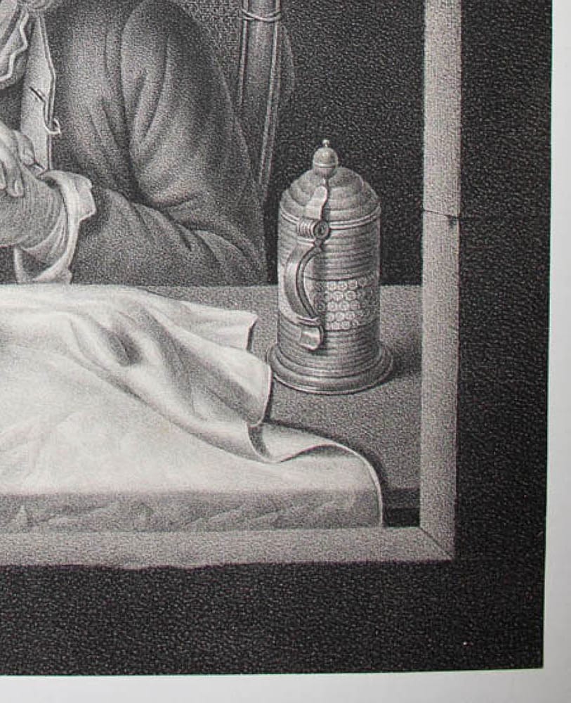 Unbekannt (19. Jahrhundert), Mann beim Tischgebet, Genredarstellung, 19. Jahrhundert, Lithographie