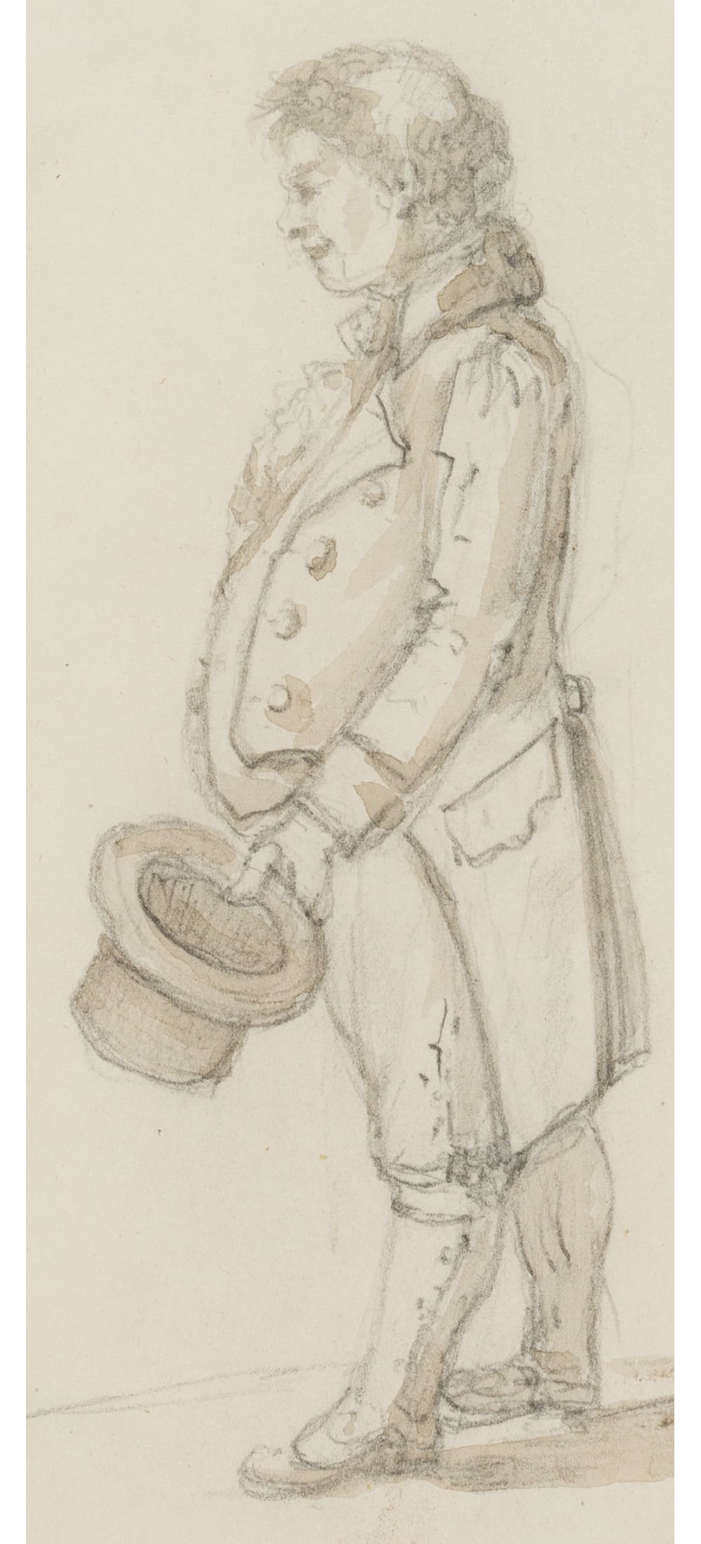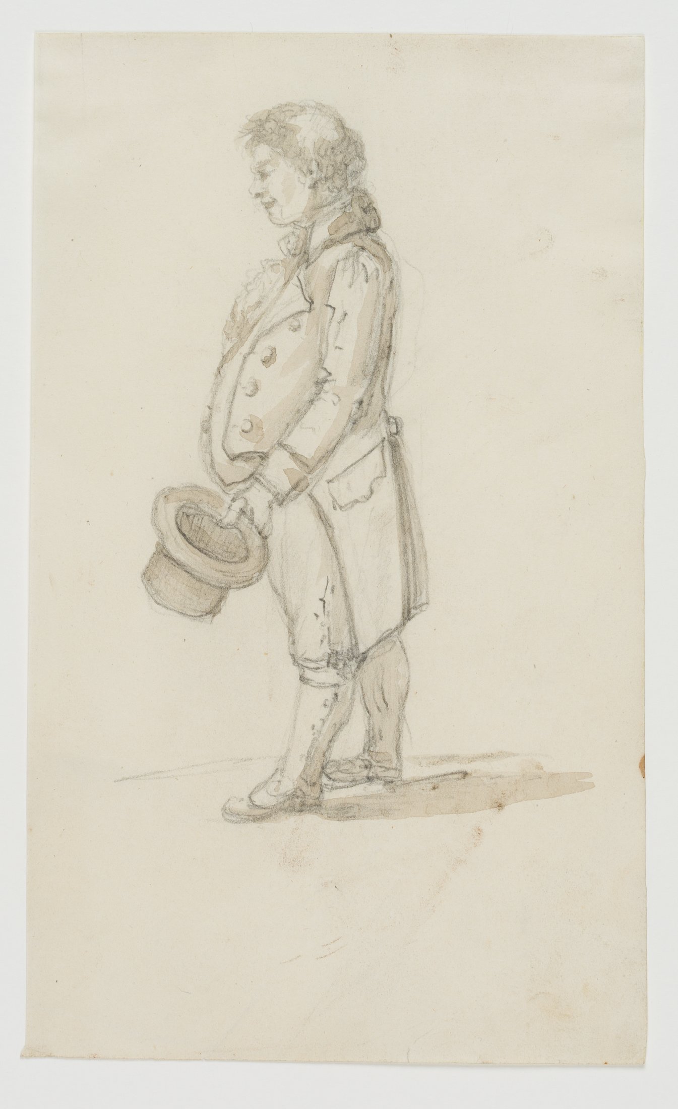 - Schlagworte: Zeichnung, Lavierung, Bauch, Hut, Mann, Stehender, Personen, Deutschland, Romantik, 1800-1849