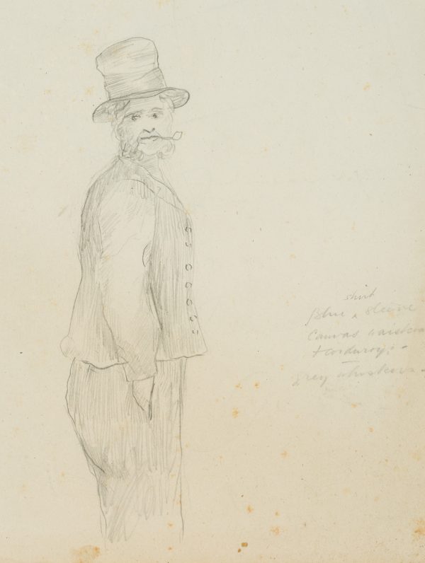 Unknown (19th century), Man with top hat, portrait, full body picture, top hat, 19th century, Pencil