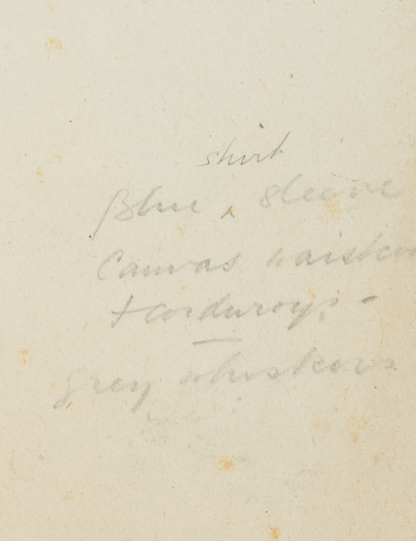 - Inscription: Inscribed to the right of the image: “shirt / Blue sleeve…”.