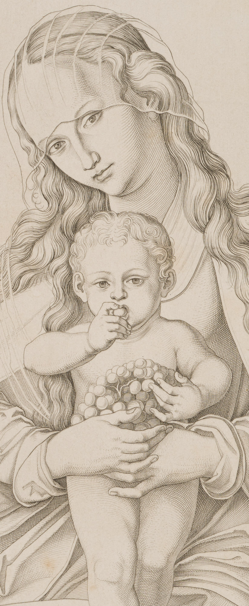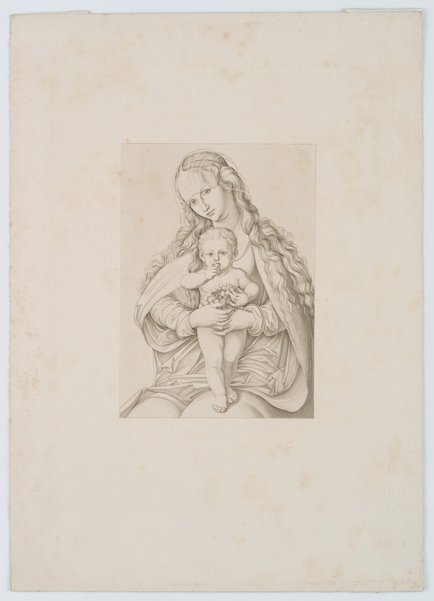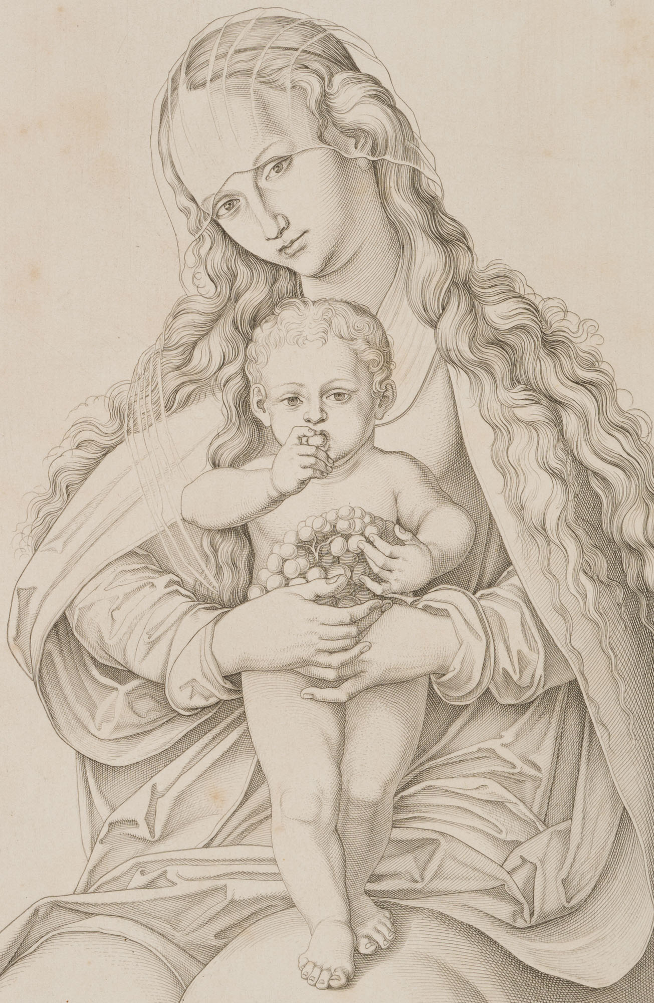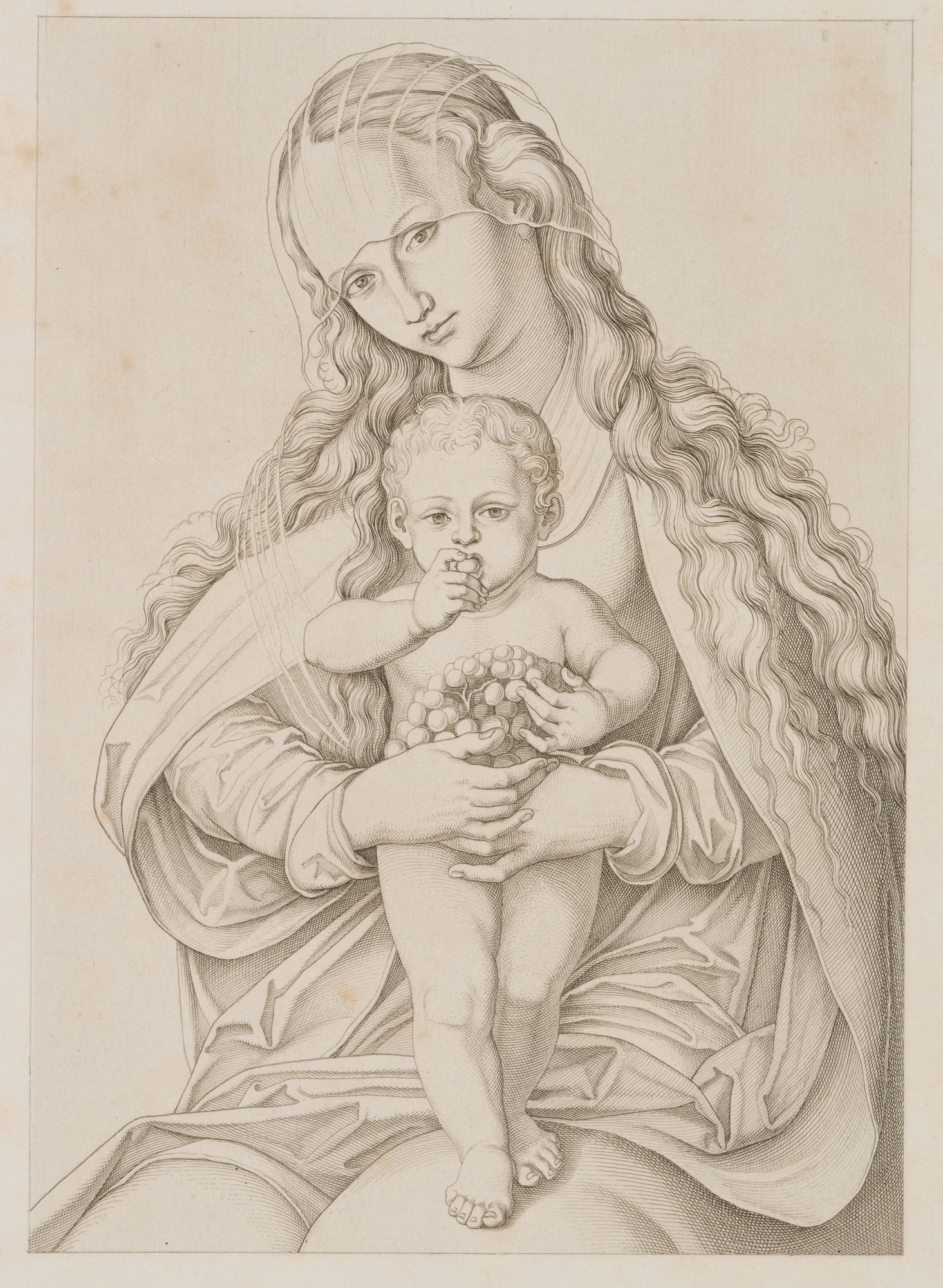 Unbekannt (19. Jahrhundert), Maria mit dem Kind Trauben essend, 19. Jahrhundert, Stahlstich