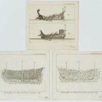 Unbekannt (19. Jahrhundert), Französische Marine, Aufrisse von Schiffen und Manöverpläne der Flotten, 6 Blatt, um 1830, Kupferstich