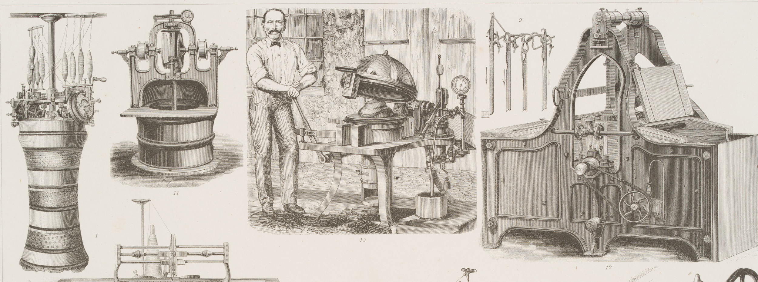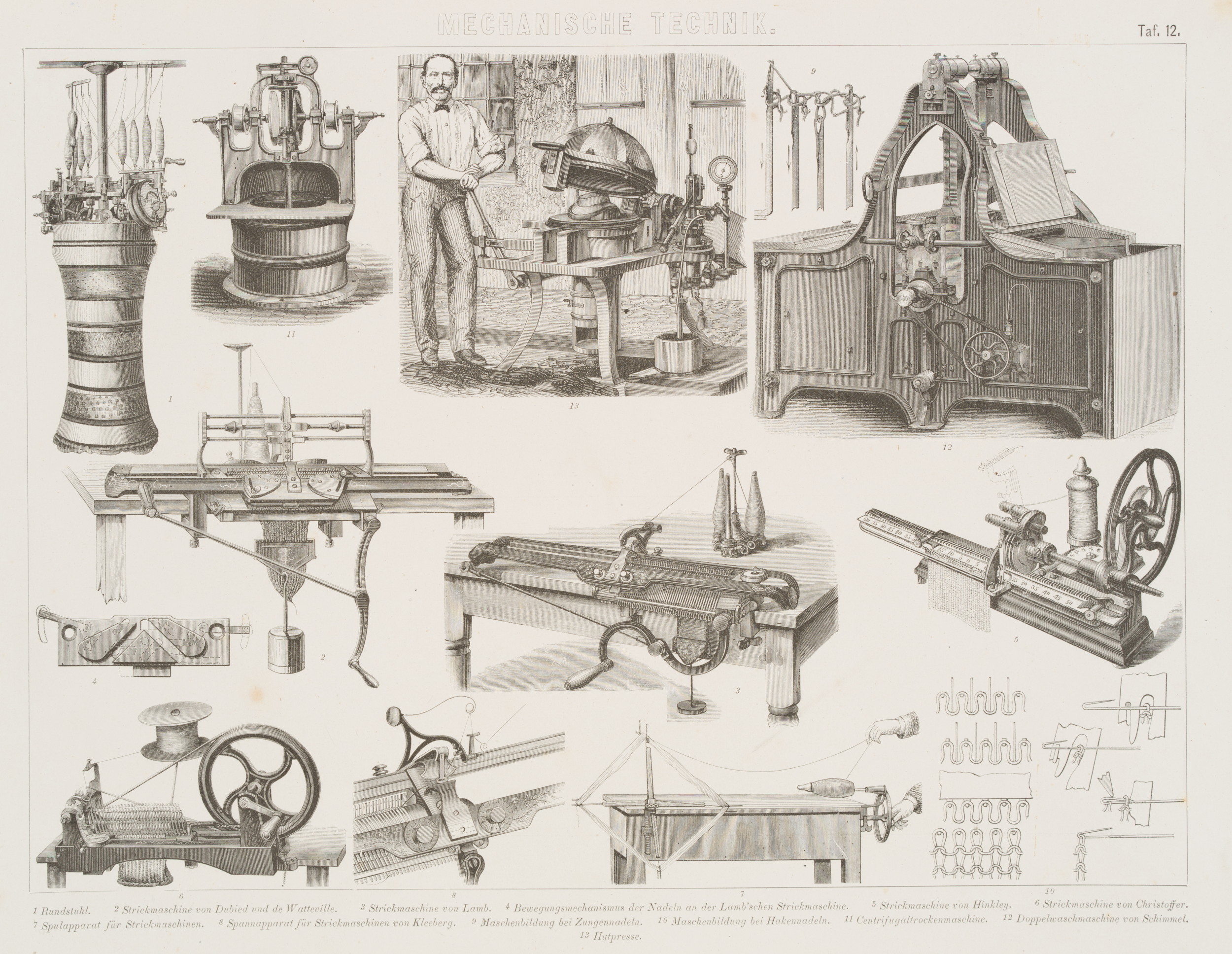 • Schlagworte: Strickerei, Handarbeit, Manufaktur, Strickmaschine, Dubied und de Watteville, Lamb Strickmaschine, Hinkley, Christoffer, Kleeberg, Hutpresse, Technologie, Deutschland, Realismus, 1850-1899