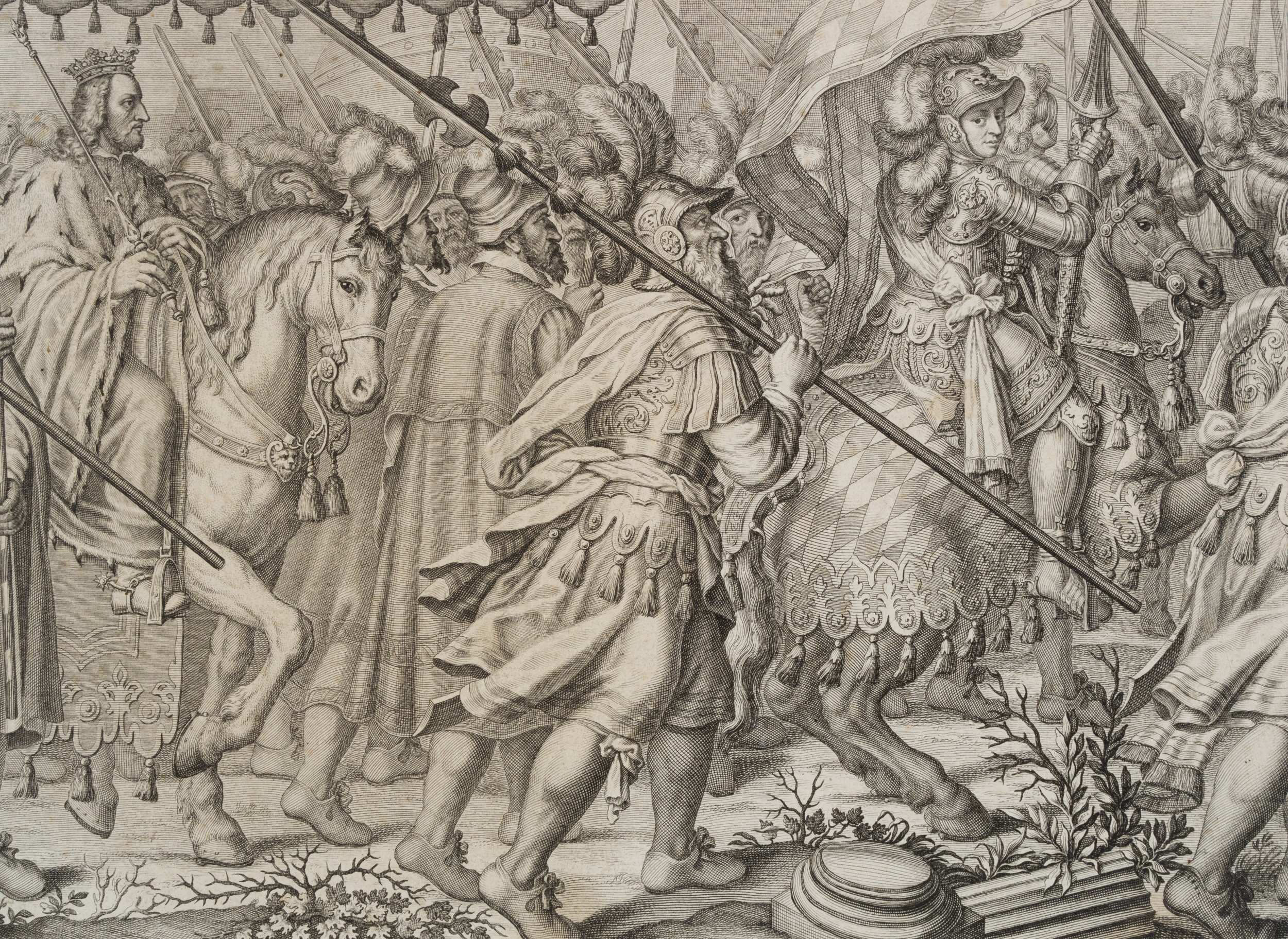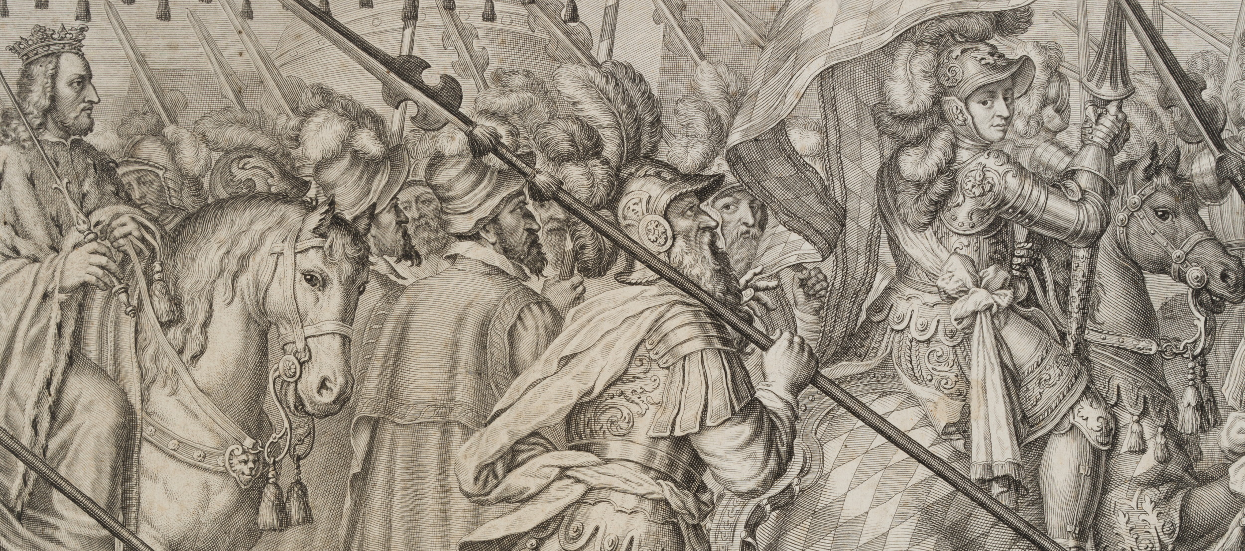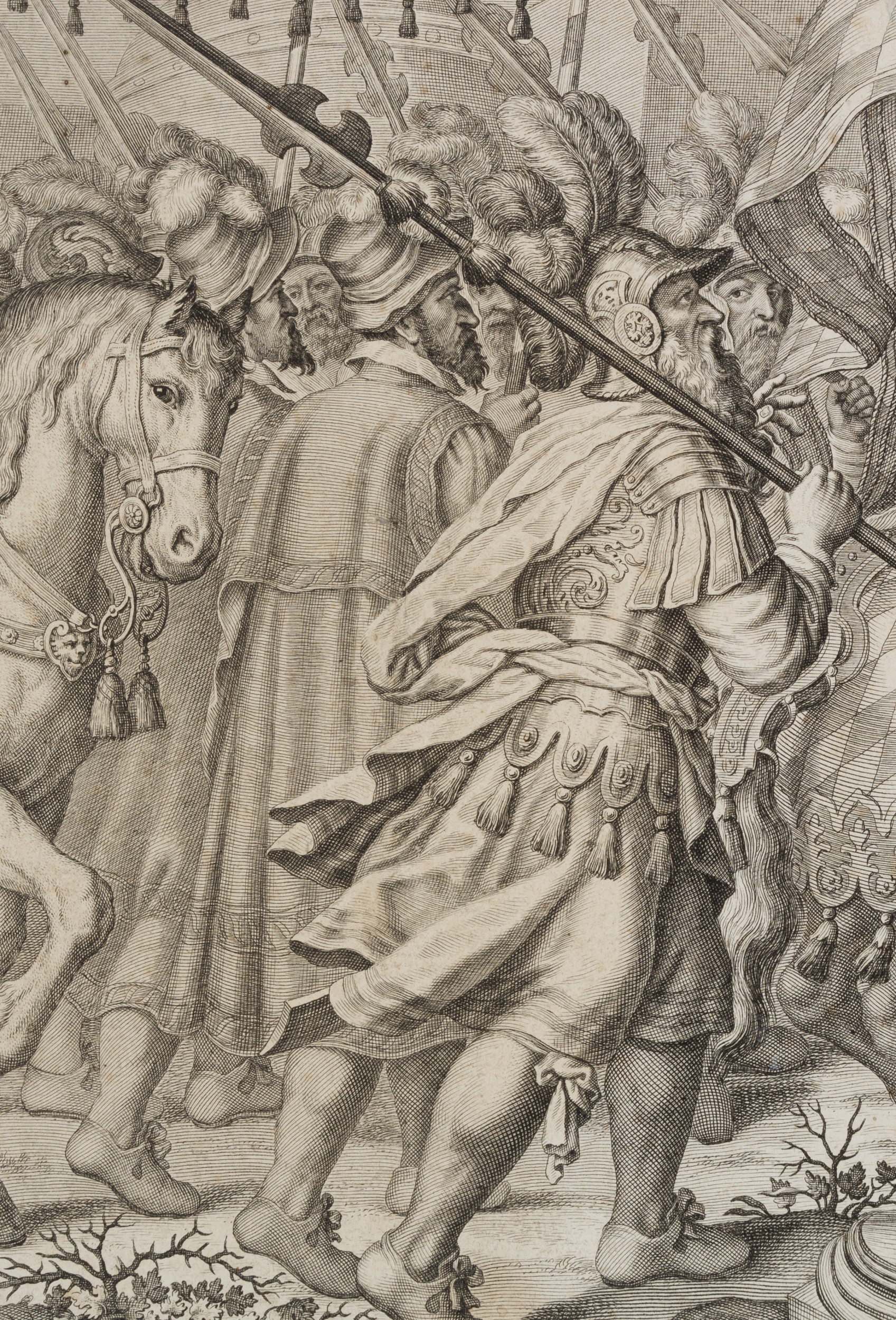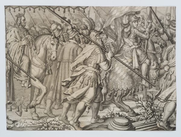 Unknown (19th century), Military train with king, horsemen and foot soldiers, 19th century, Copper engraving