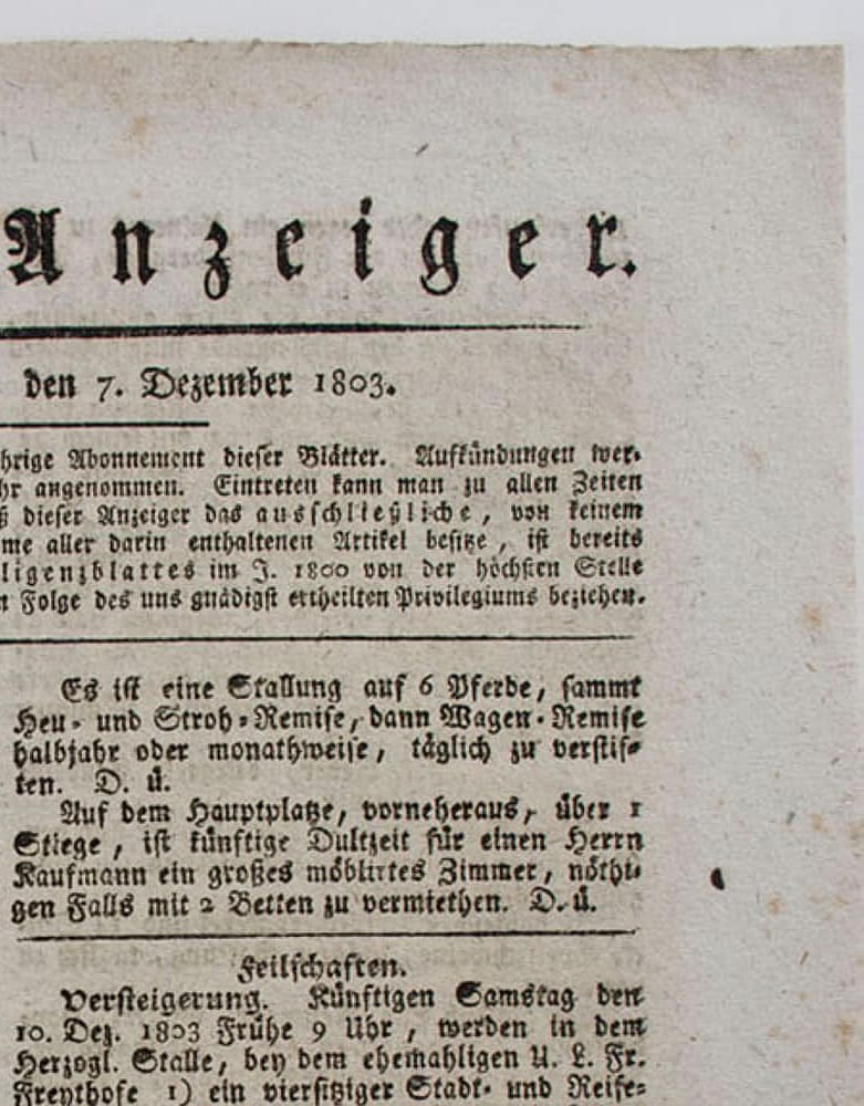 - Beschreibung: Münchner Anzeiger 7. Dezember 1803, 8 Seiten.