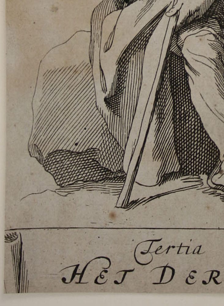 • Beschreibung: Niederländischer Künstler, Ruhender Bauer, Kupferstich, um 1800. Beschreibung: Kupferstich eines unbekannten Künstlers, bezeichnet unten: “Tertia Pars Heet derde deel”. Schöne Ansicht eines ruhenden Bauern auf einem Stein. Er stützt sein Haupt auf seinen Dreschflegel, die Sense liegt neben ihm am Boden.