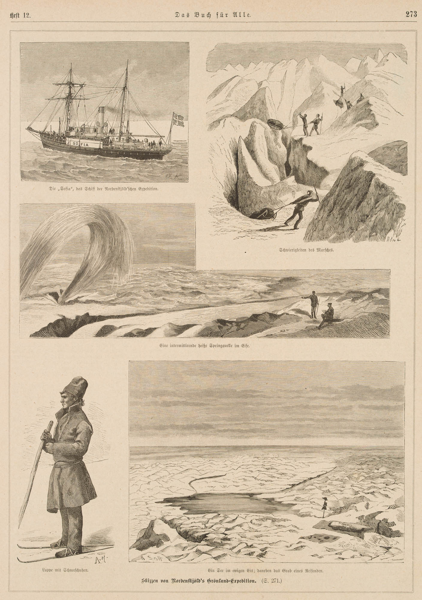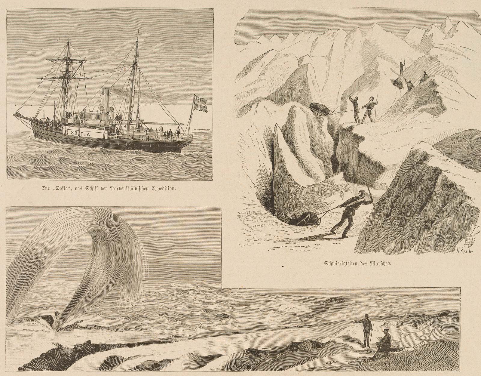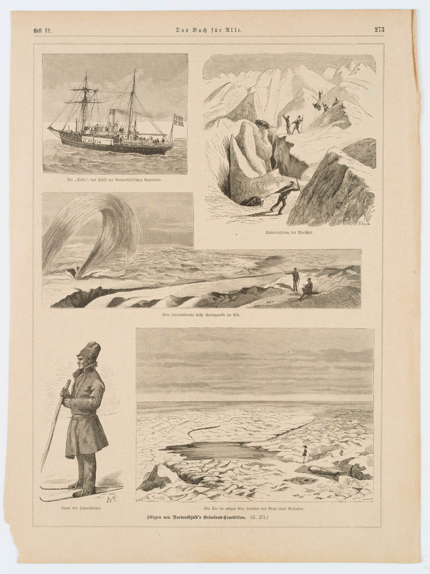 Unbekannt (19. Jahrhundert), Skizzen von Nordenskjöld’s Grönland Expedition, um 1876, Holzstich