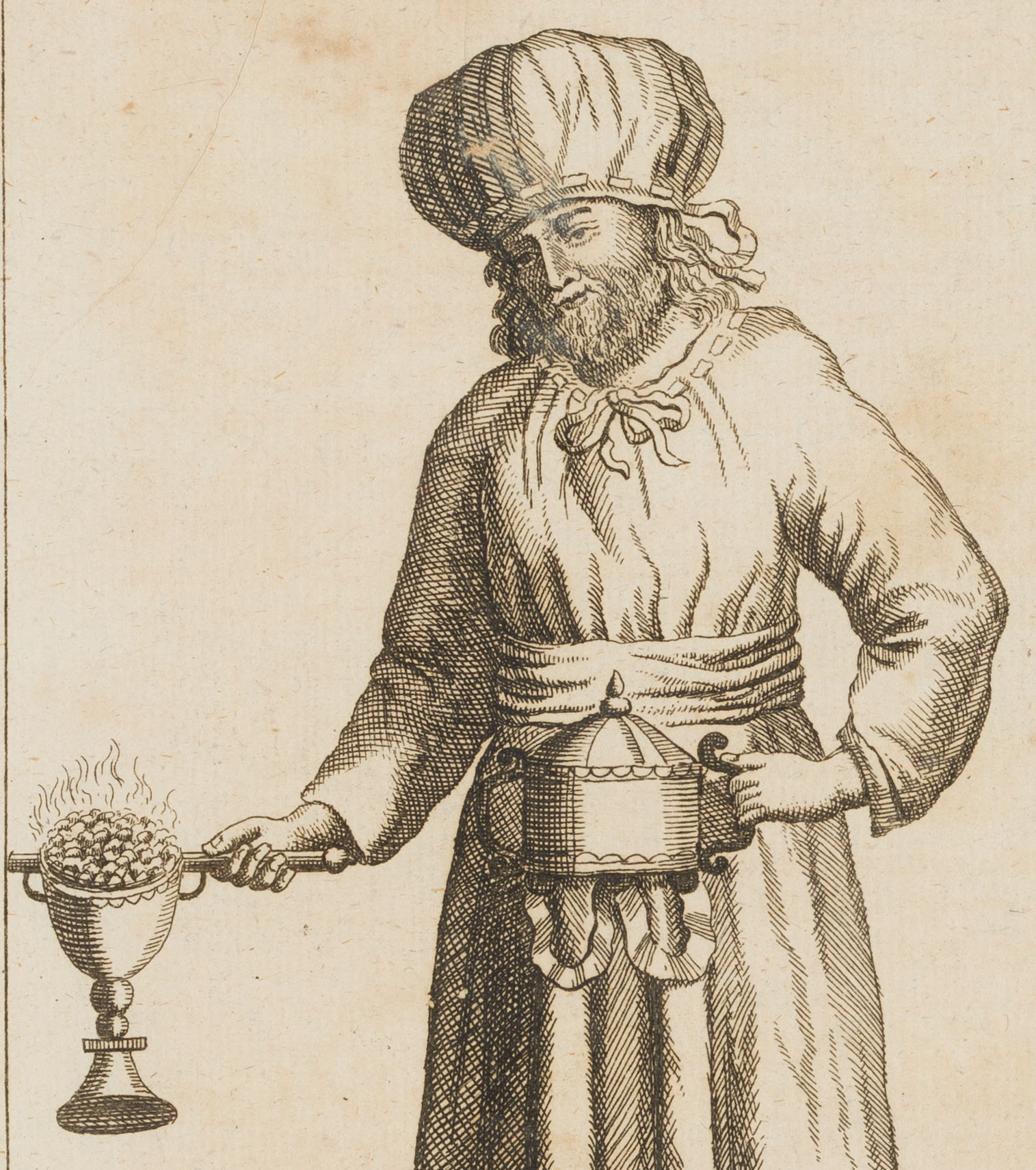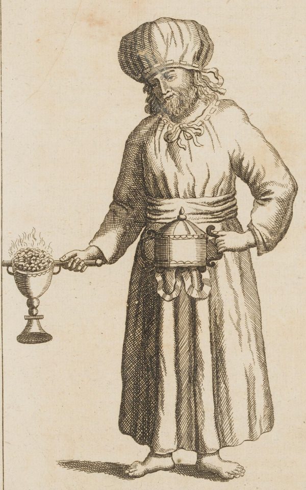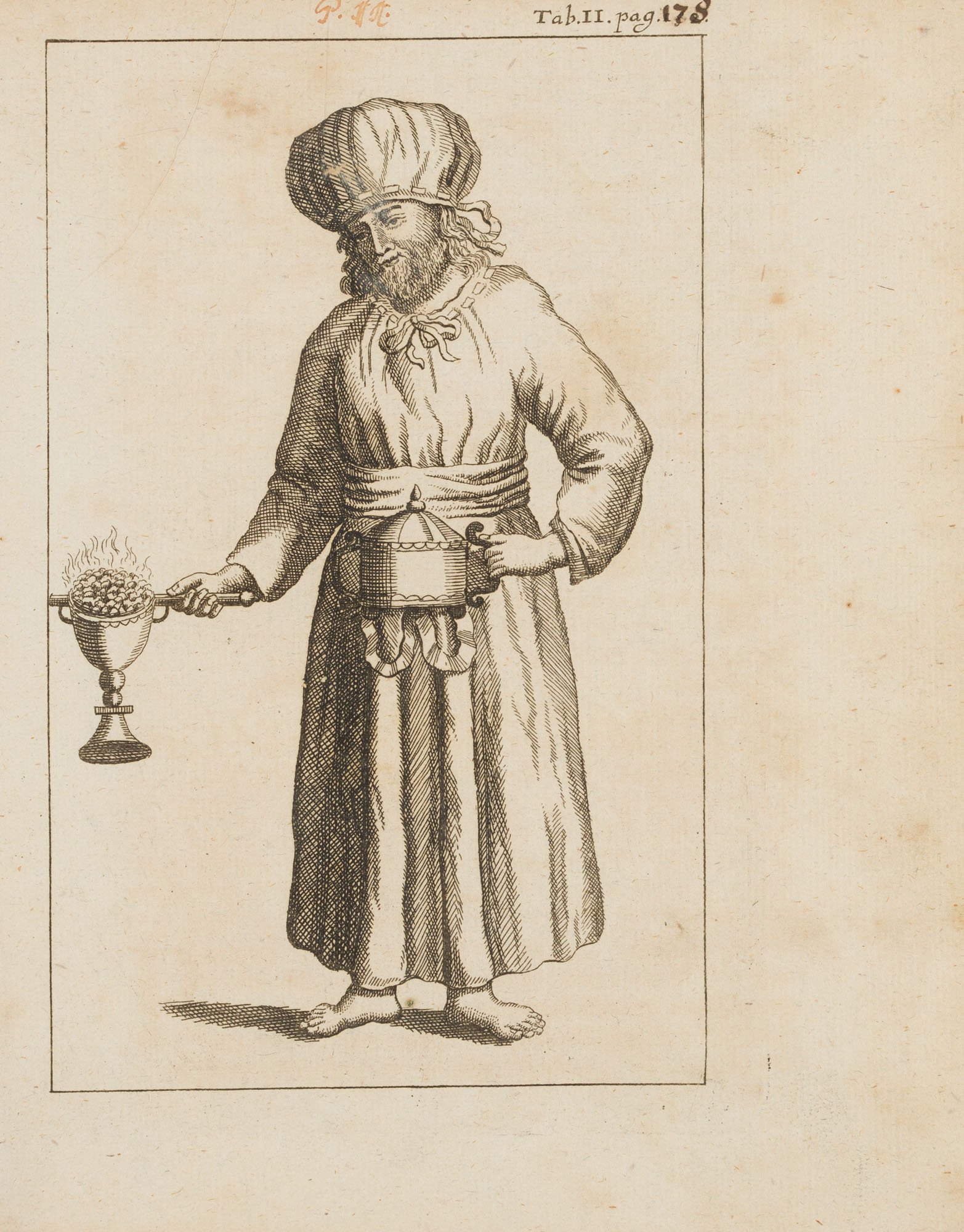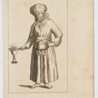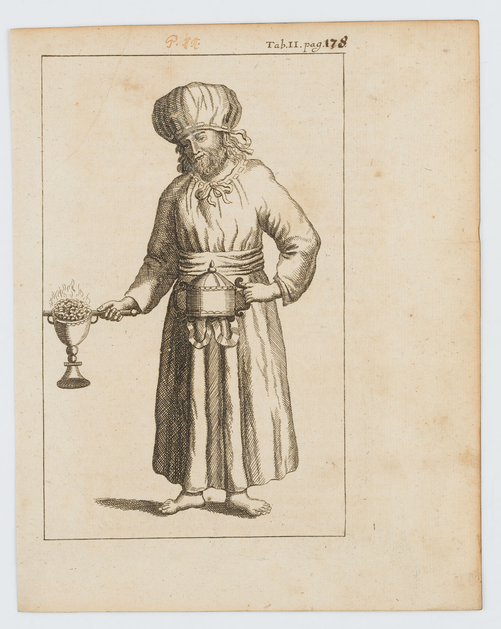 Unknown (19th century), Oriental with large cap and burning cup, 19th century, Copper engraving