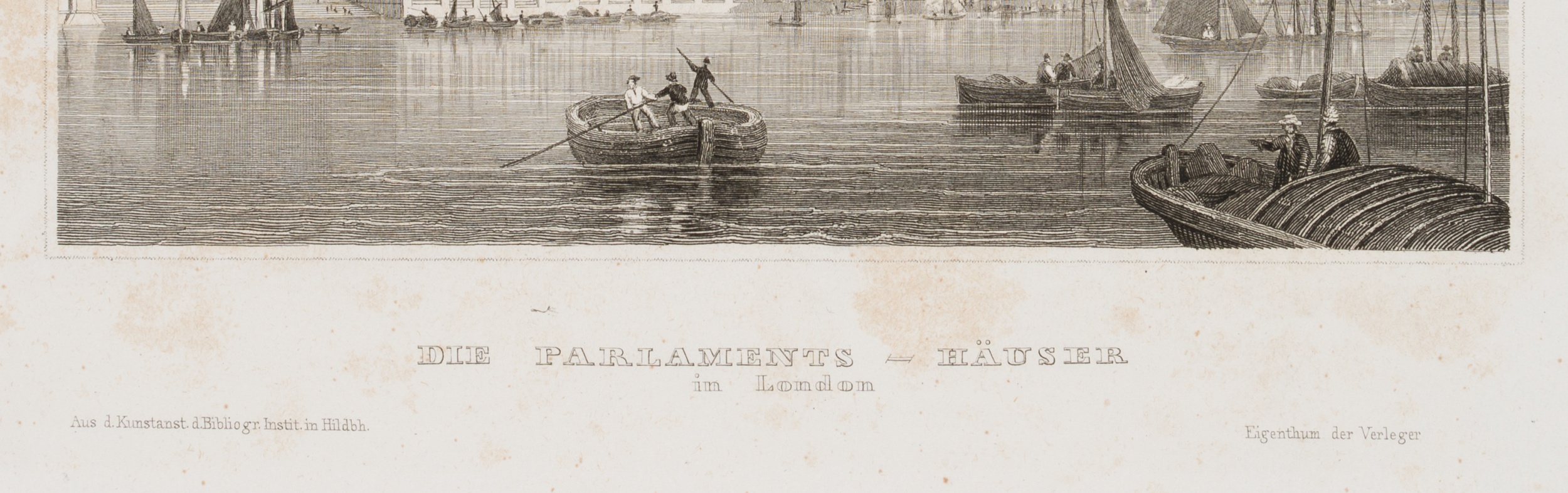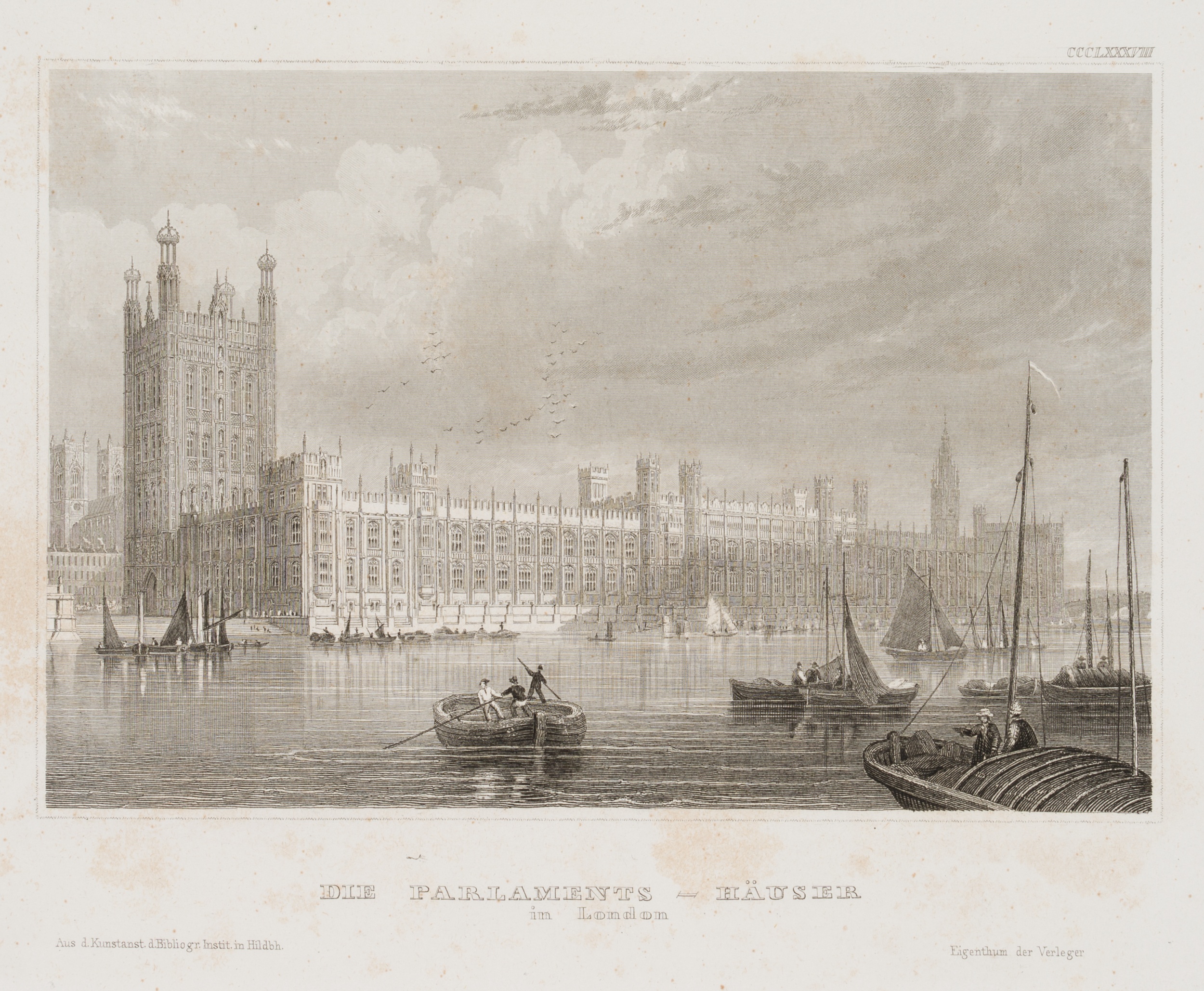 - Bezeichnung: Unten im Druck bezeichnet: “Die Parlaments-Häuser in London”.
