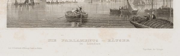 - Inscription: At the lower part inscribed in the printing plate: “Die Parlaments-Häuser in London”.