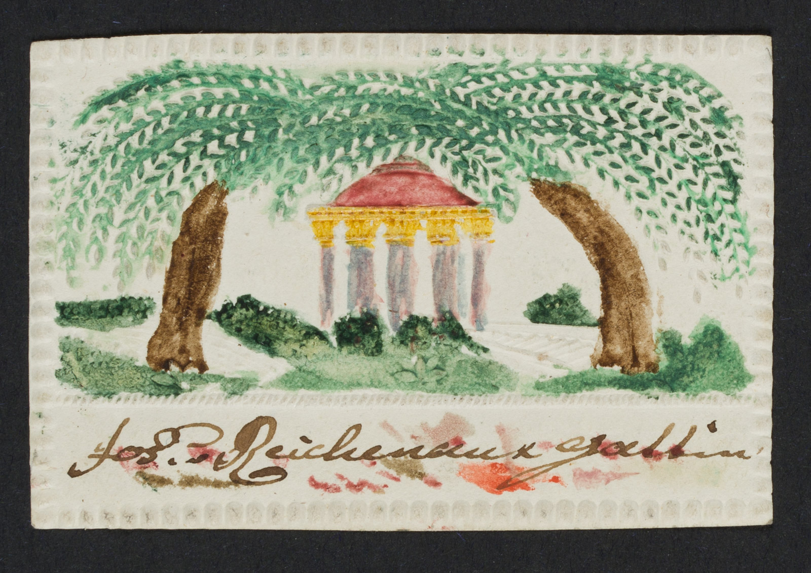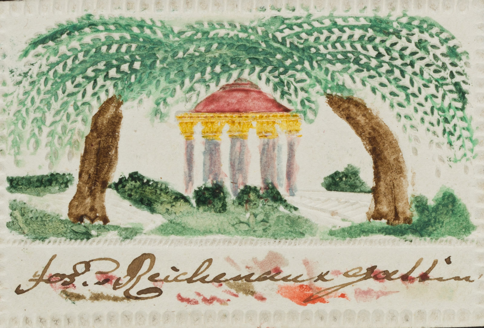 Unbekannt (19. Jahrhundert), Parklandschaft mit kleinem Tempel, um 1900, Aquarell