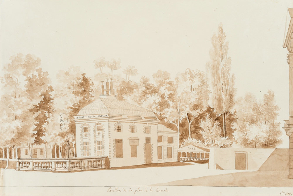 Unbekannt (19. Jahrhundert), Pavillon Place de la Concorde, Paris, 1810, Pinselzeichnung