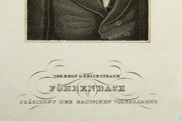 - Bezeichnung: Unterhalb der Darstellung vom Künstler in der Druckplatte kunstvoll mit dem Namen des Dargestellten bezeichnet.