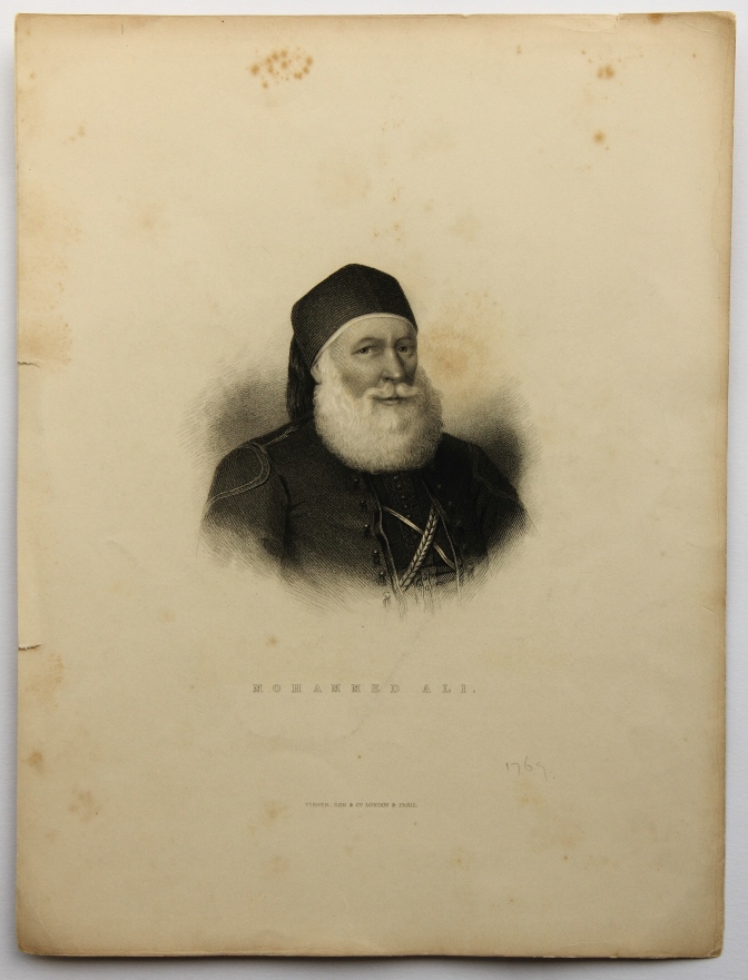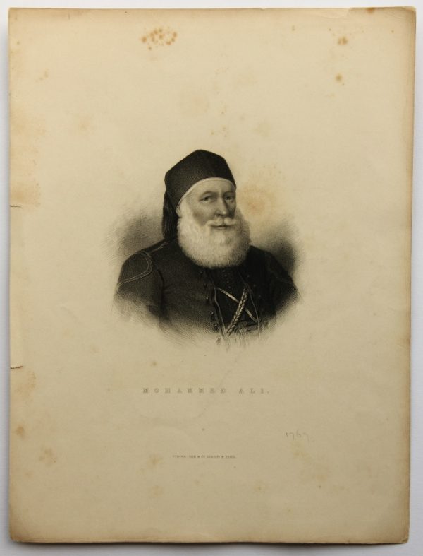 - Description: Bust portrait in three-quarter profile of Muhammad Ali Pasha (1769 Kavala – 1849 Alexandria), ruler of Egypt and Ottoman Pasha, steel engraving. Description: Steel engraving on paper. Titled below the image in printing plate with the sitter’s name.