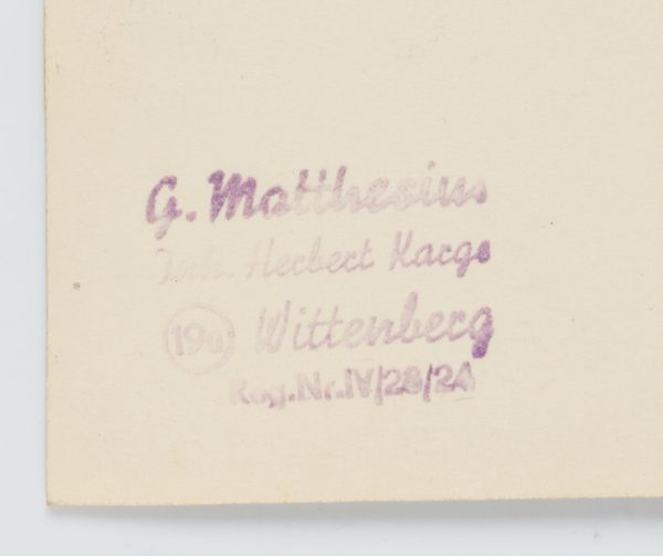 Stamp of the photo studio “G.Matthesius Inh. Herbert Karge Wittenberg [.]” on verso.