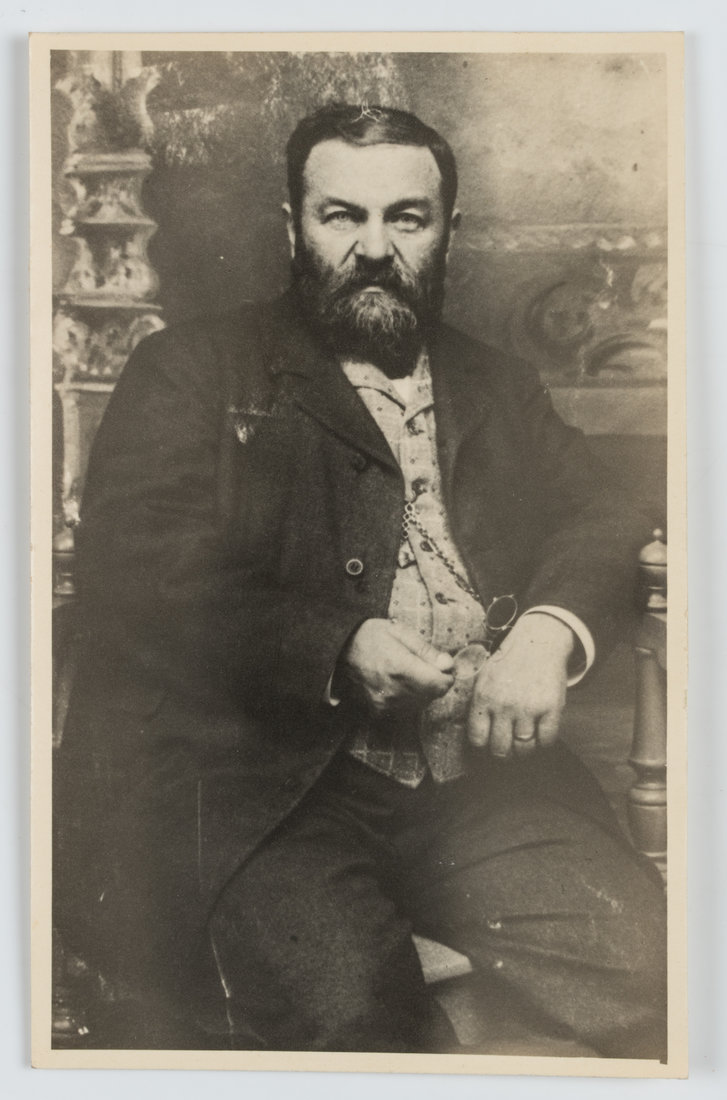 - Beschreibung: Sitzporträt eines Bärtigen en face, seine Brille haltend. verso Stempel des Fotoateliers “G.Matthesius Inh. Herbert Karge Wittenberg [.]”.