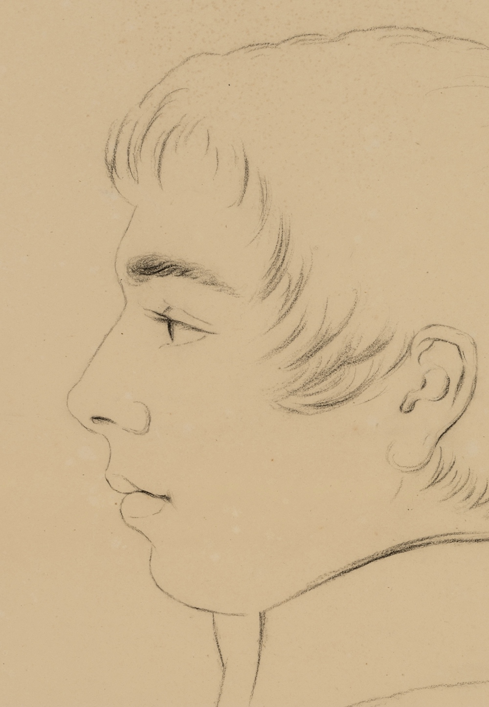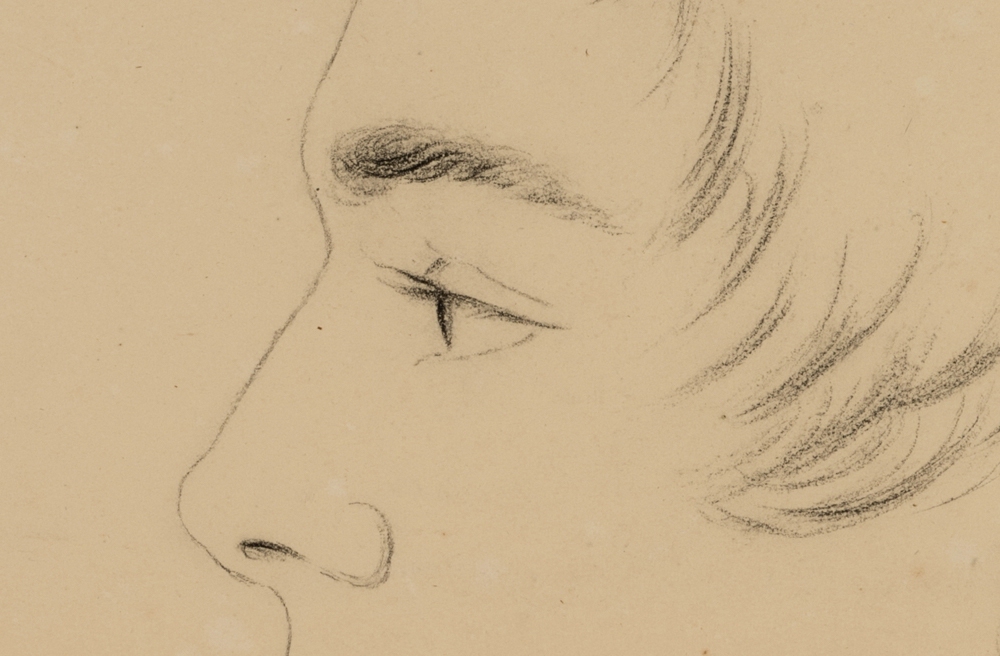 - Beschreibung: Großformatige Porträtzeichnung eines jungen Mannes im Profil.