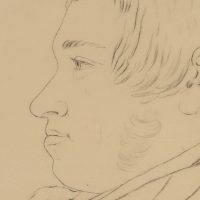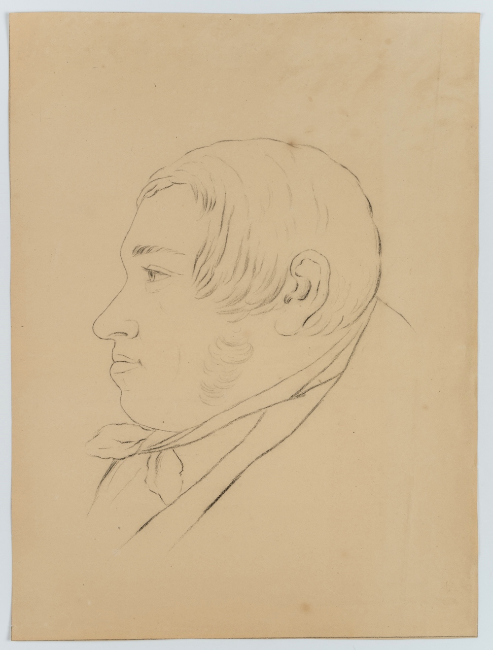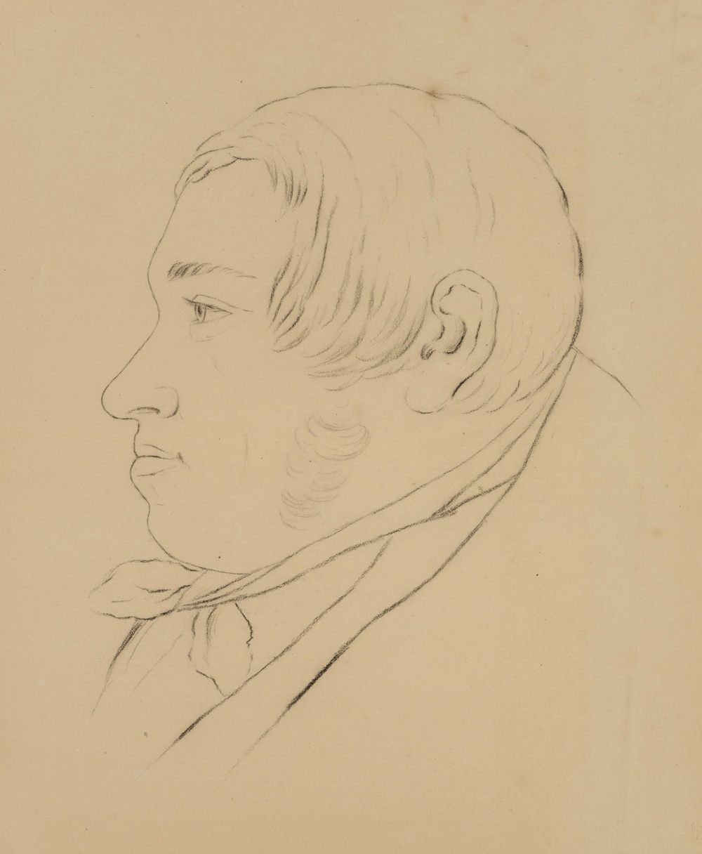 Unbekannt (19. Jahrhundert), Porträt eines jungen, beleibten Herren im Profil, um 1850, Bleistift