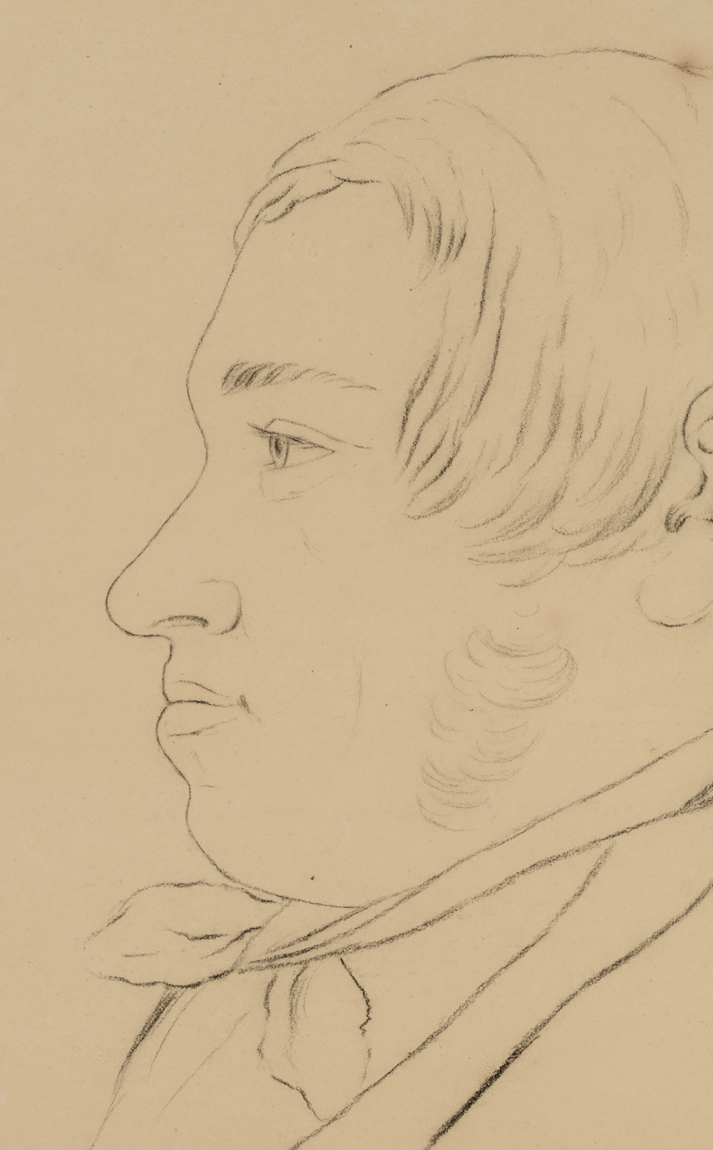 - Beschreibung: Großformatige Porträtzeichnung eines jungen Mannes im Profil.