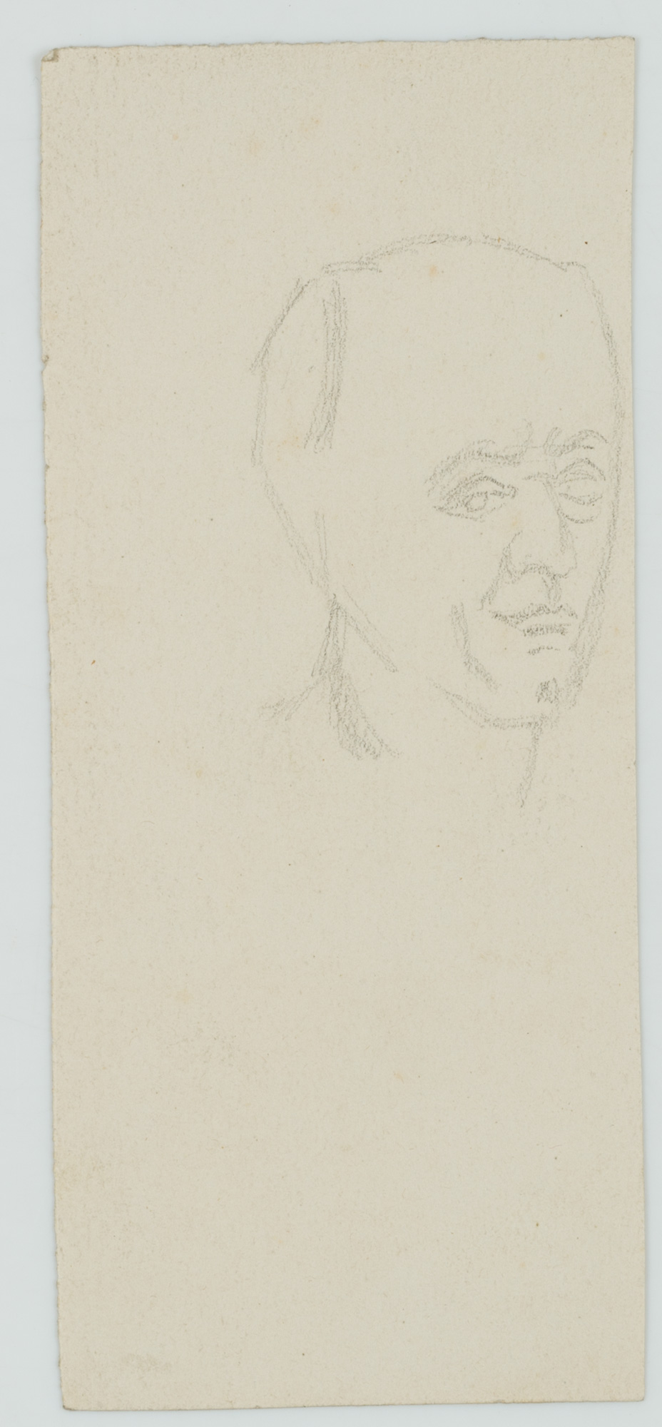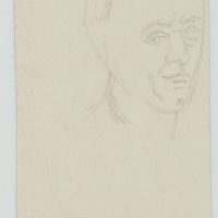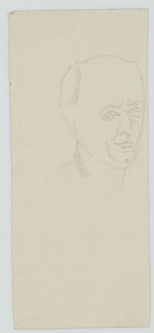 - Description: The young man in a skirt and Roman sandals could be an invalid who is dependent on an assistant after a war accident. On the reverse with a portrait sketch of a man’s head.