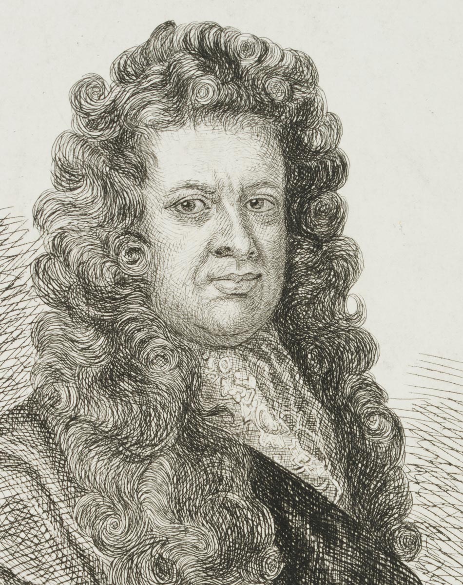 Brustbild im Halbprofil eines Mannes mit üppiger Lockenperücke und würdevollem Gesichtsausdruck.