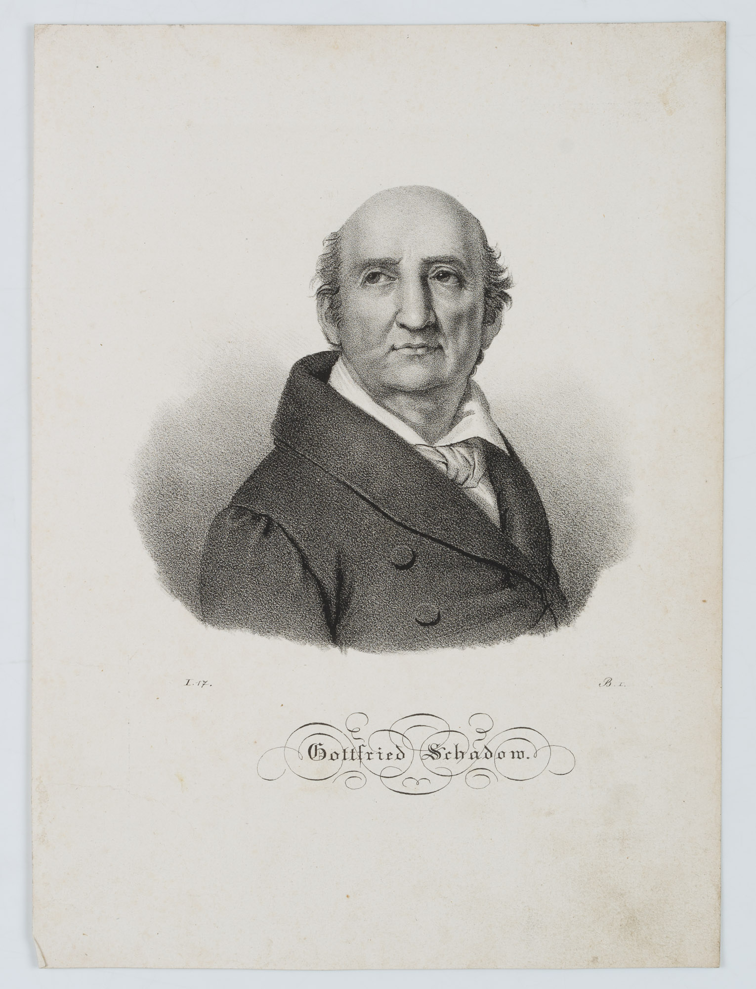 - Description: Lithograph with the bust of Gottfried Schadow.
