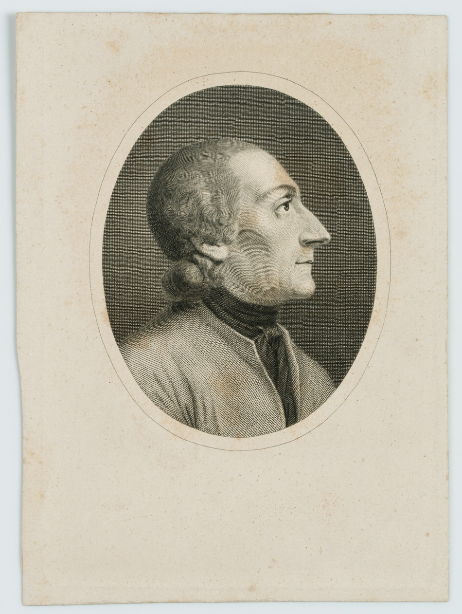 • Description: Portrait of a bust in profile in an oval. Showing the striking profile of the Zurich Reformed theologian and Enlightenment philosopher.