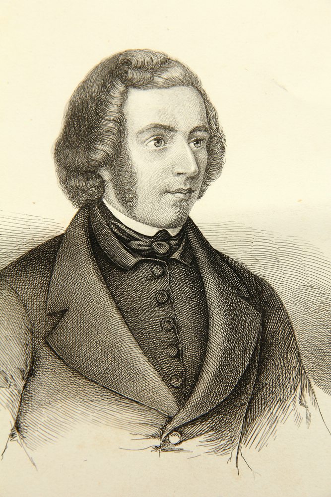 Büstenporträt im Halbprofil in Kleidung des 19. Jahrhunderts.