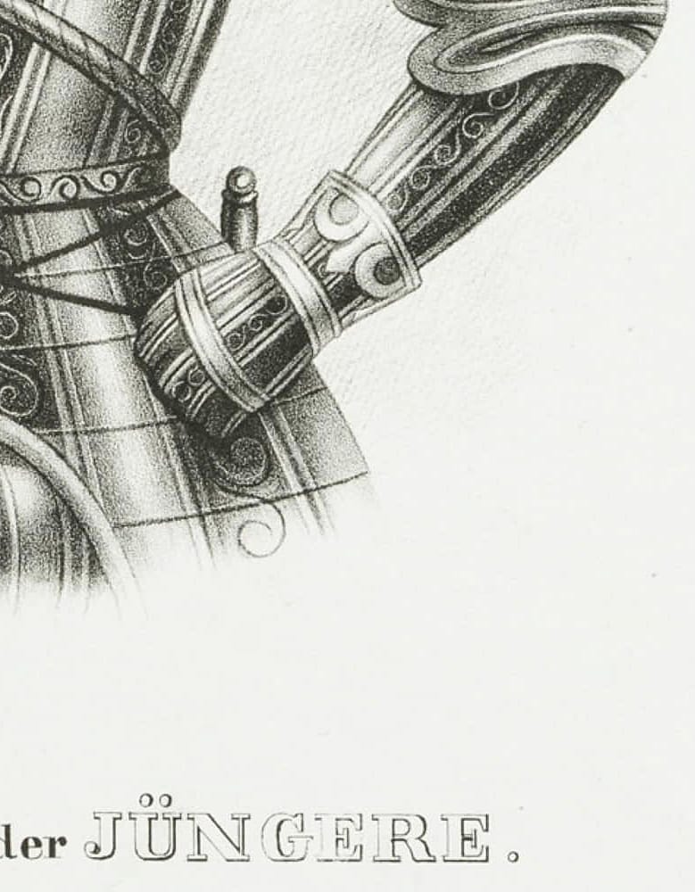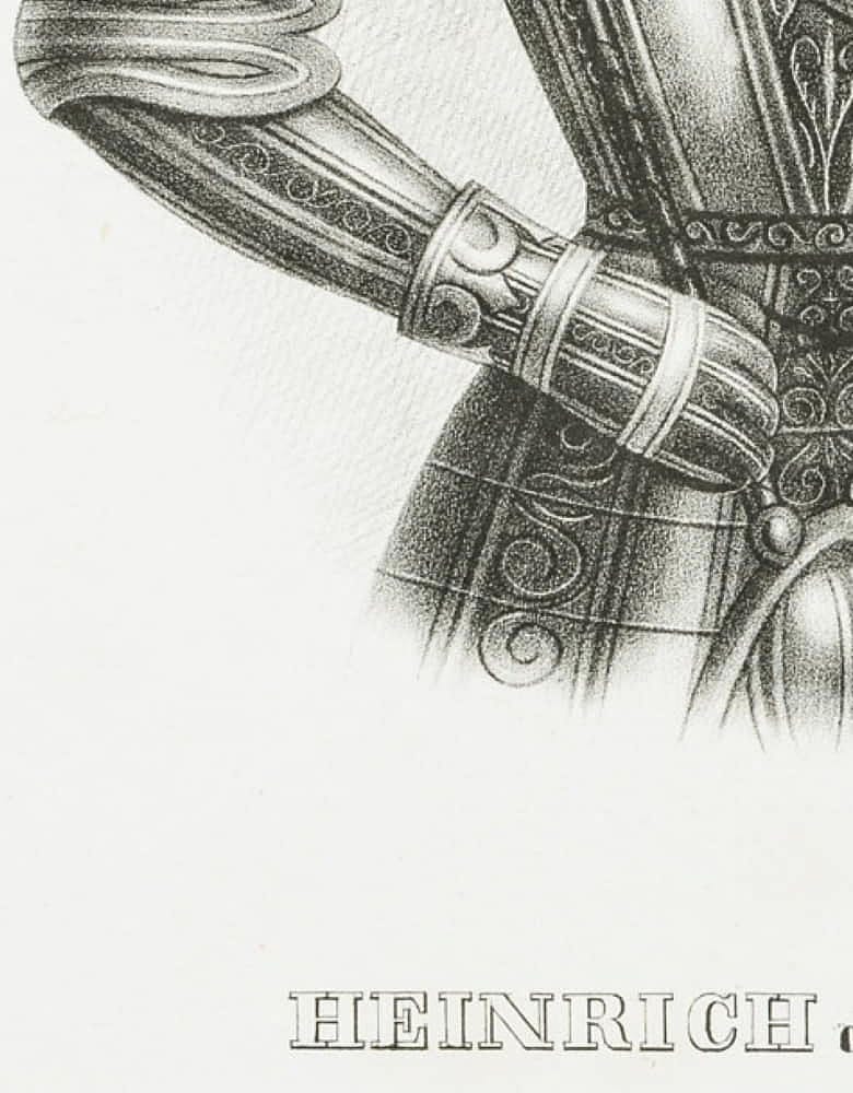 Bild ist unterhalb mit dem Namen des Dargestellten “HEINRICH der JÜNGERE.” bezeichnet. Aus einer Serie von Ritterporträts. Beachten Sie dazu unsere weiteren Angebote.