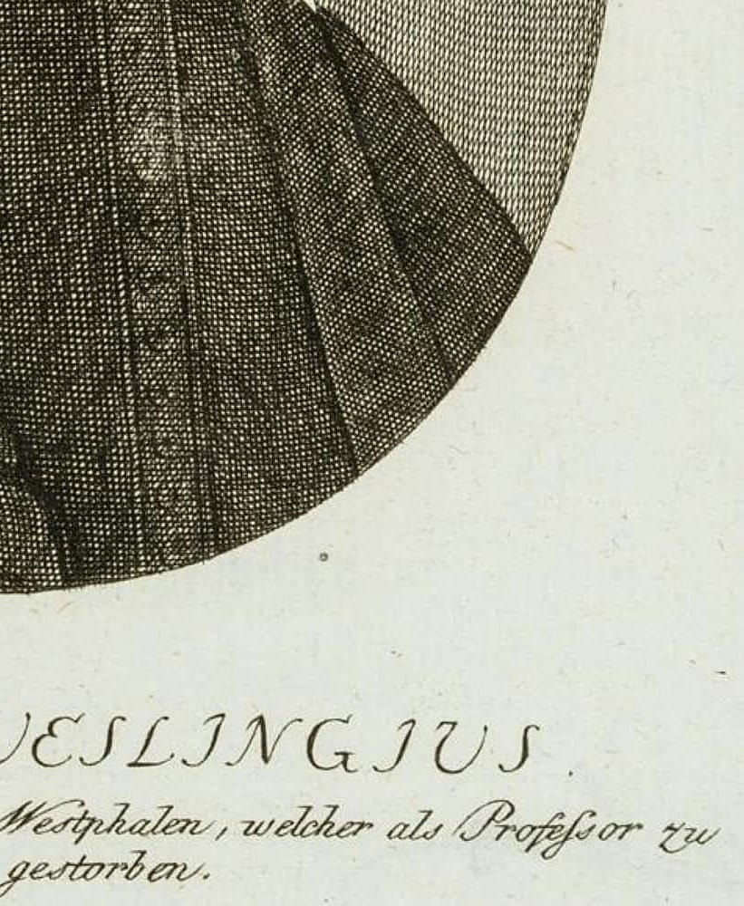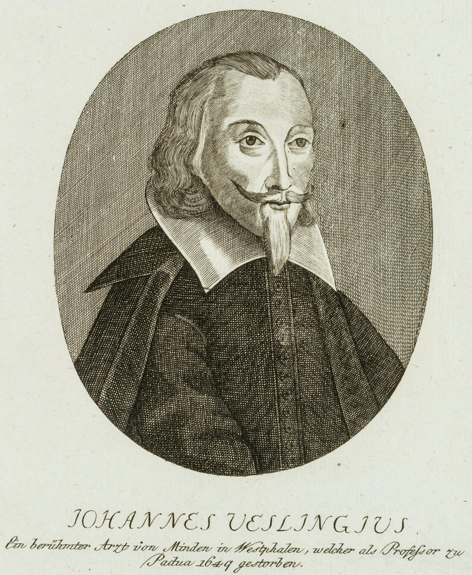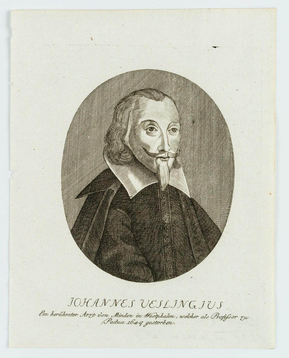 Unter dem Bild mit Namen des Dargestellten “JOHANNES VESLINGIUS” und Angaben zu dessen Leben bezeichnet.
