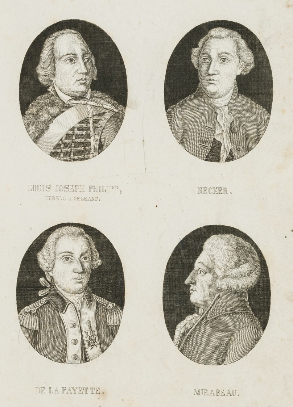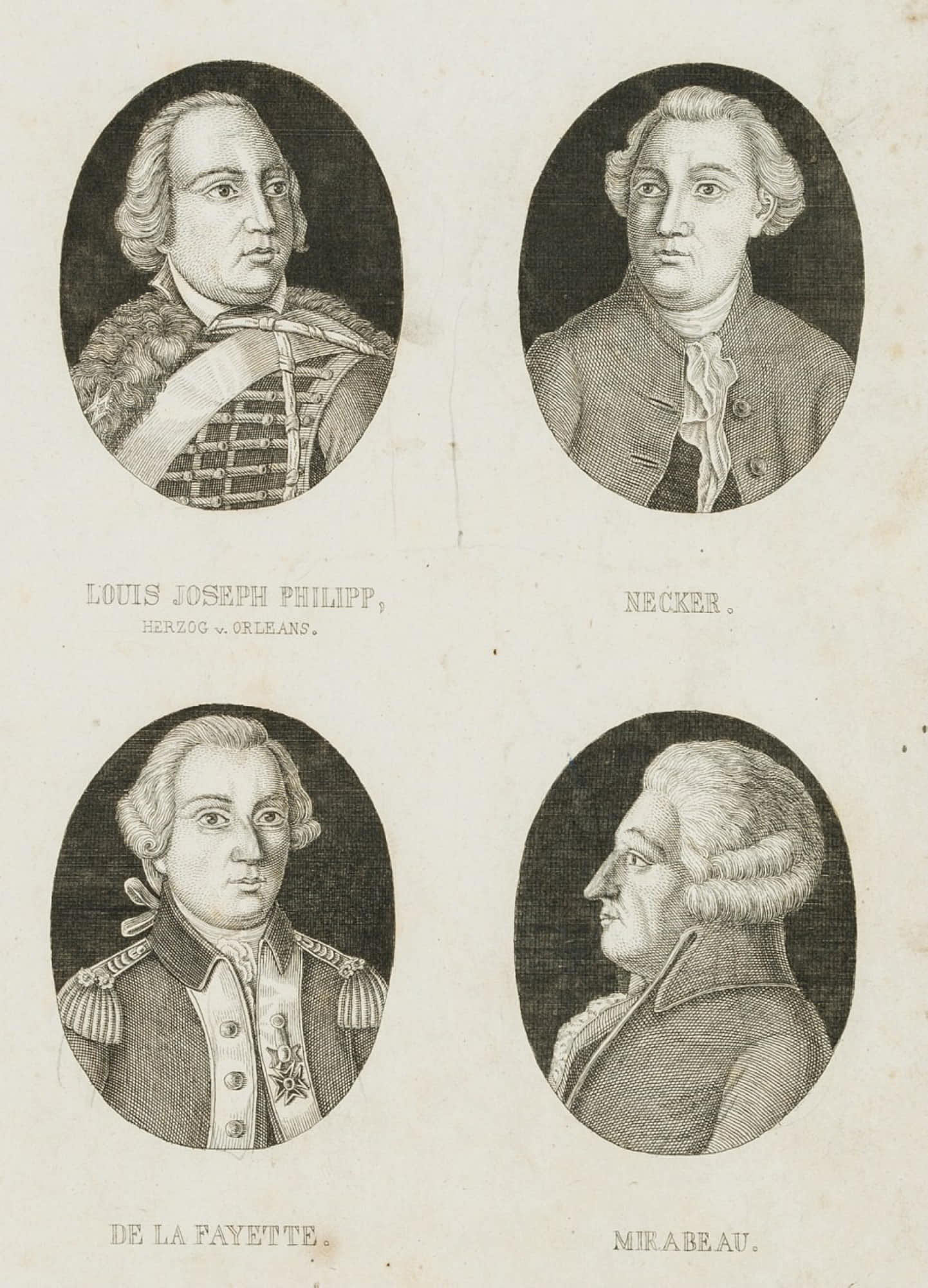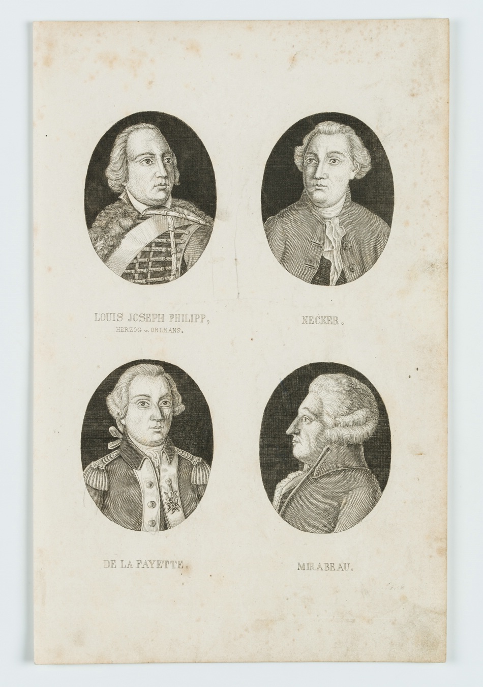 • Bezeichnung: Unten betitelt: “Louis Joseph Philipp, Herzog v. Orleans. Necker. De la Fayette. Mirabeau.”