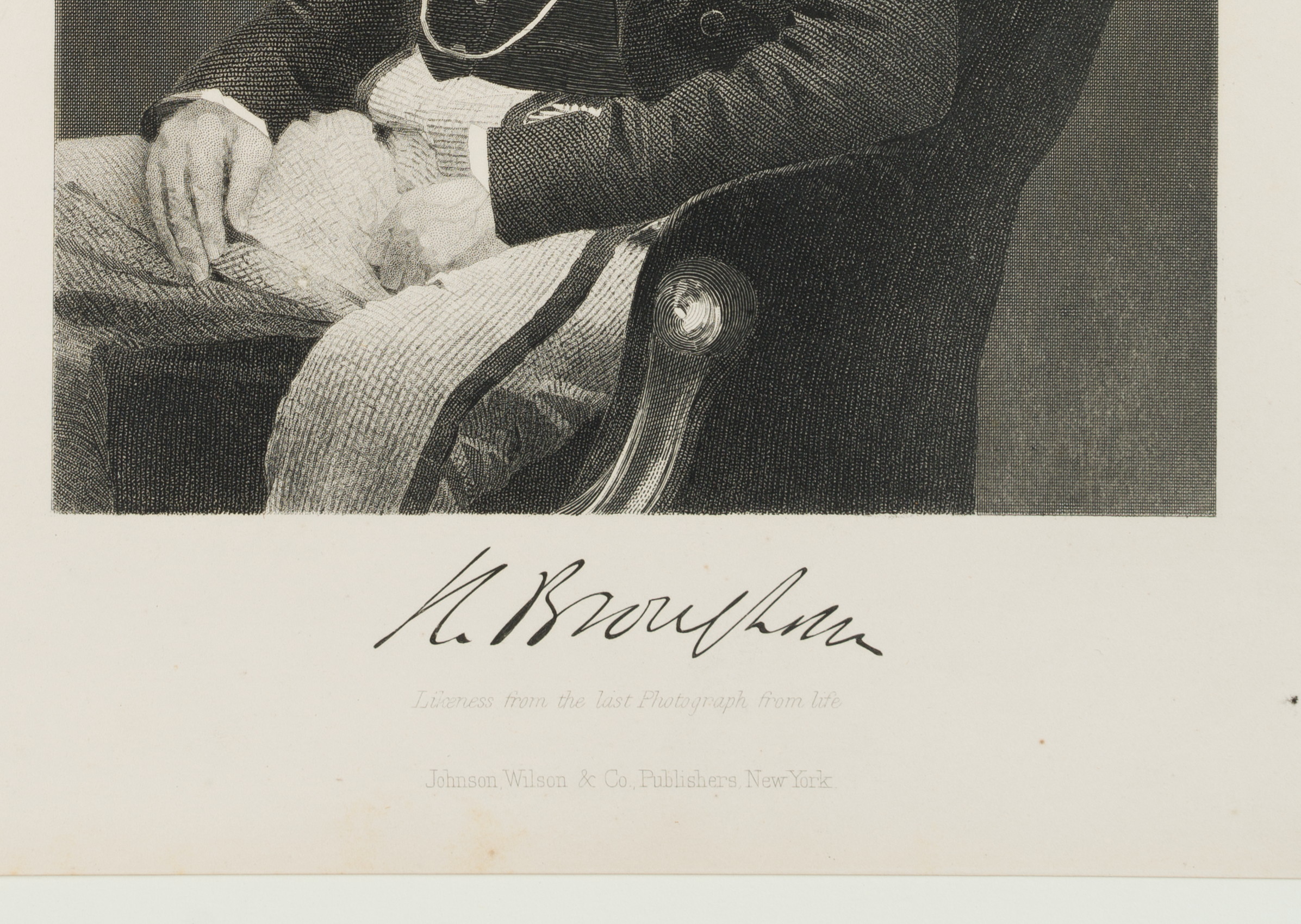 - Inscription: Lower middle inscribed in the printing plate: “H Broughen | Likeness from the last Photograph from life”.