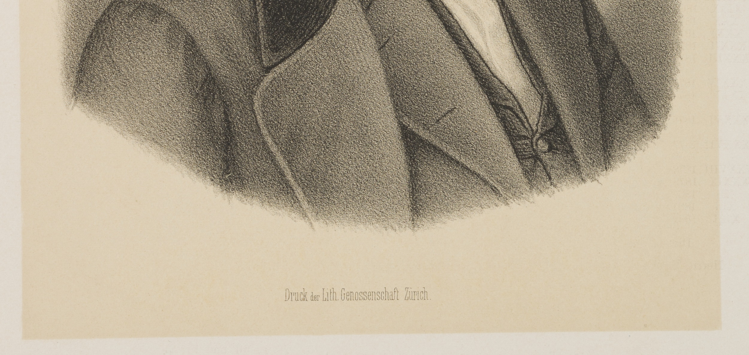 - Inscription: Lower right inscribed by another person: “Ludwig Vogel”. Lower middle further inscription: “Druck der Lith. Genossenschaft Zürich”.