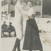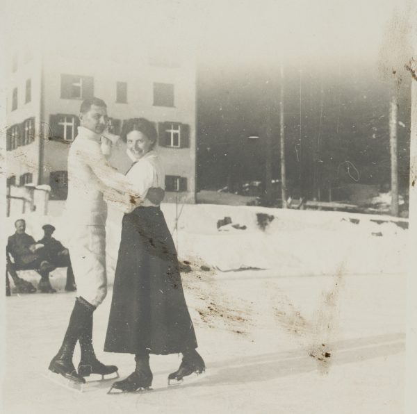 Unknown (19th century), Postcard with skating couple, c. 1900, Black and white photograph