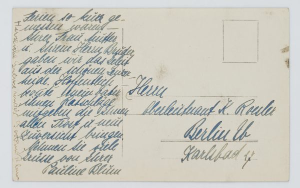 - Beschreibung: Pauline Blum schreibt an Oberstleutnant K. Roesler, Berlin.