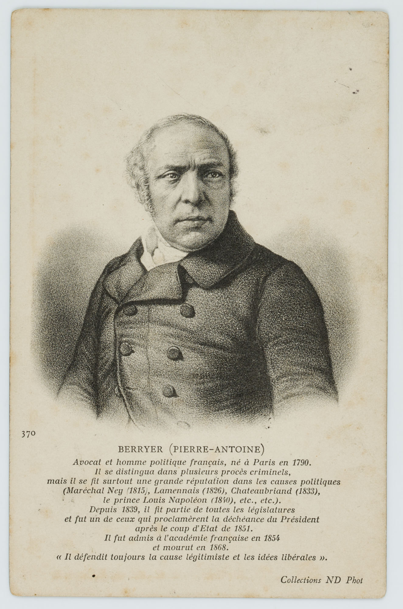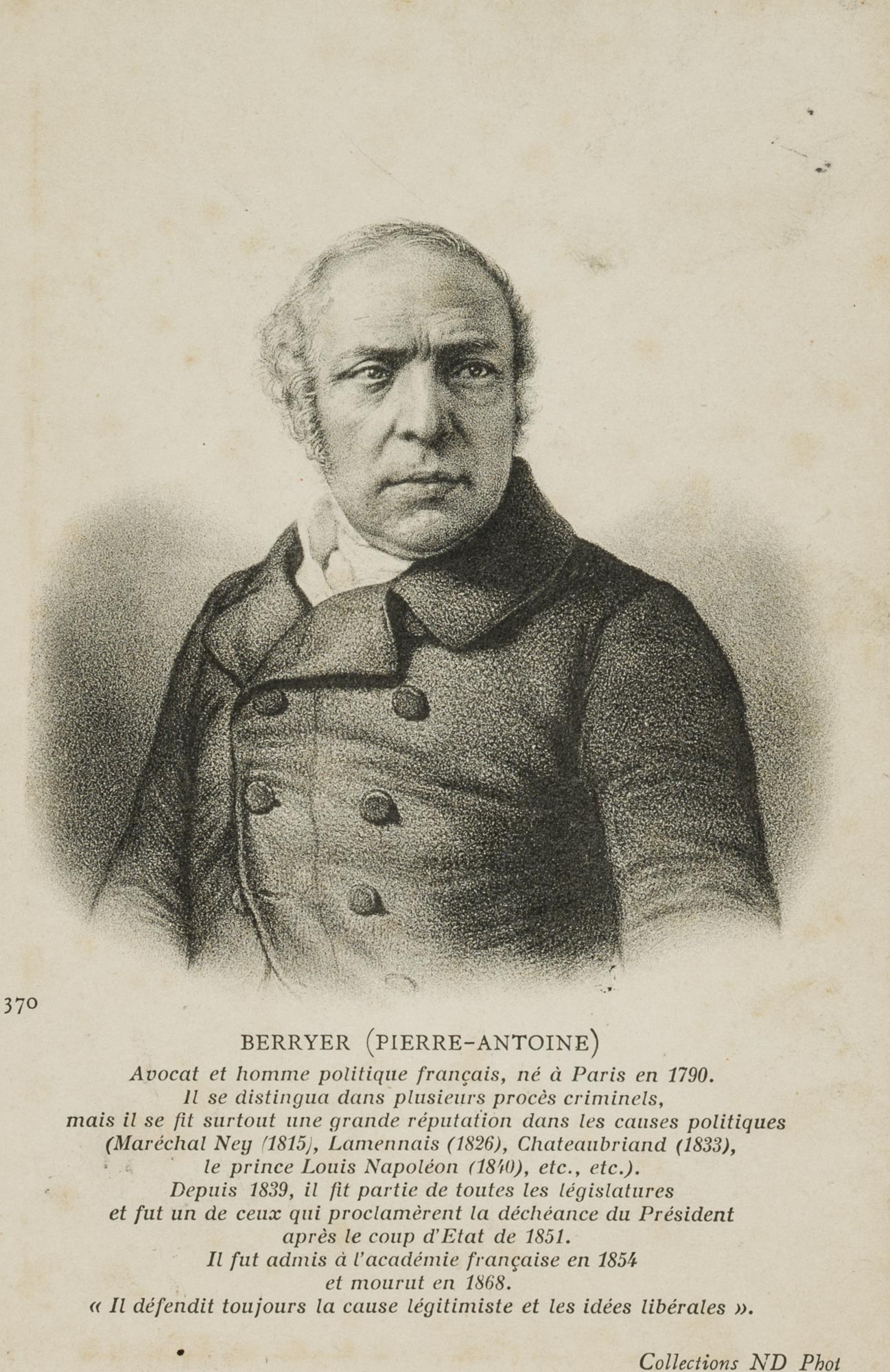 Pierre-Antoine Berryer (1790 Paris – 1868 Augerville-la-Rivière) was a French lawyer and politician. - Date: 19th century