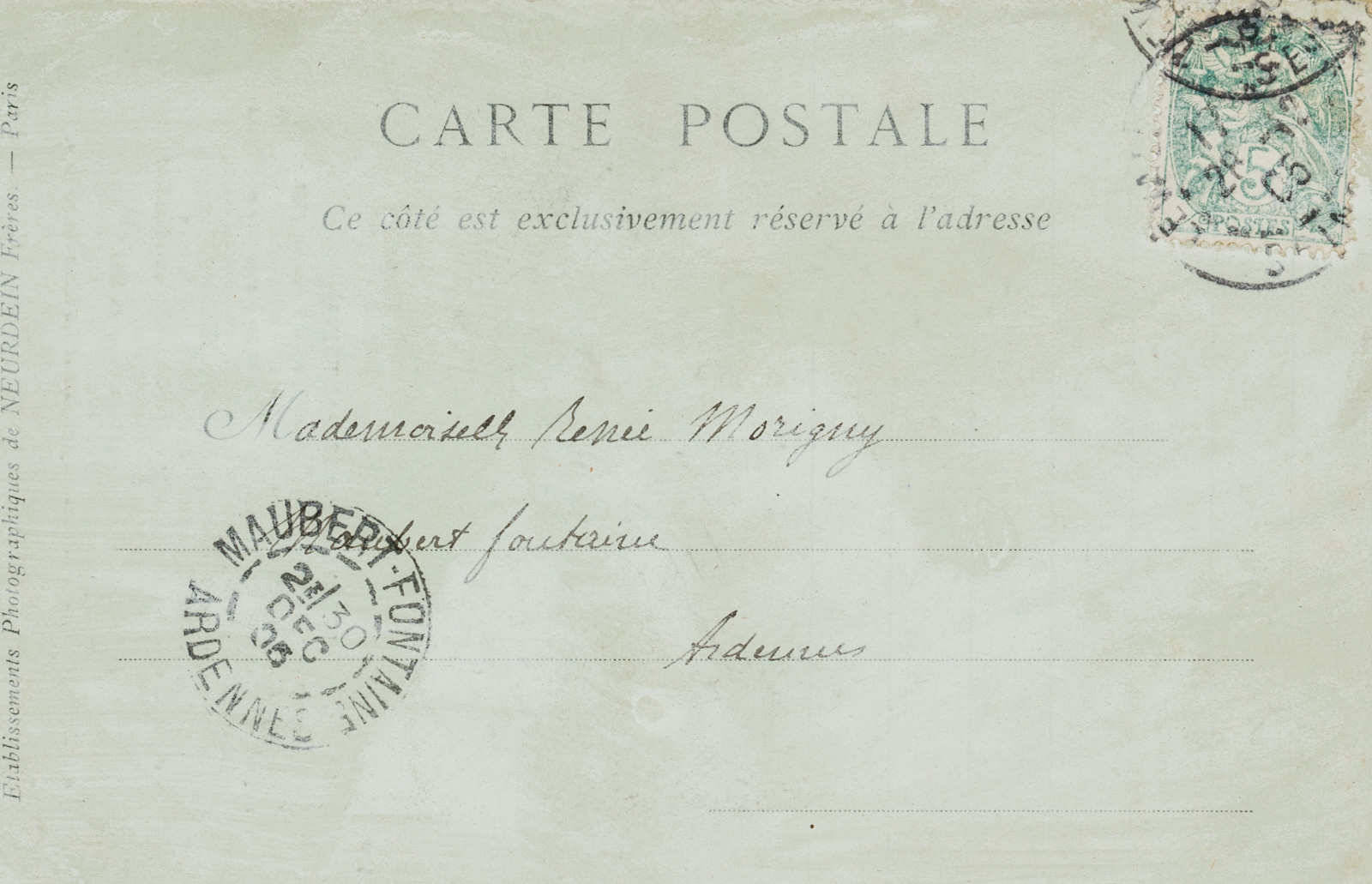 - Bezeichnung: Links unterhalb der Darstellung nummeriert: “370”, darunter mit Angaben zum Dargestellten auf französisch. Verso in schwarzer Tinte beschriftet und postalisch gelaufen.