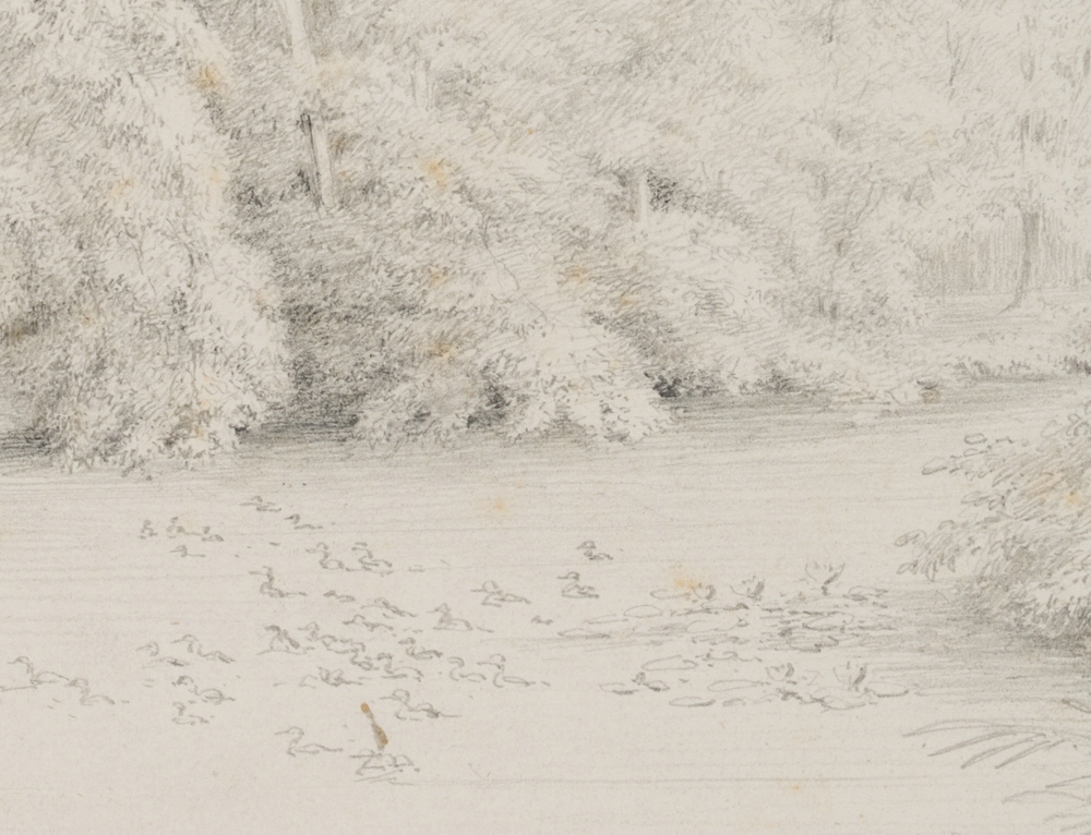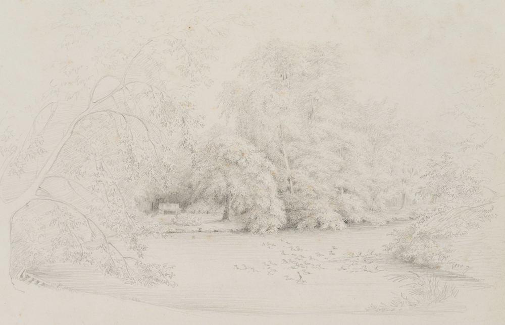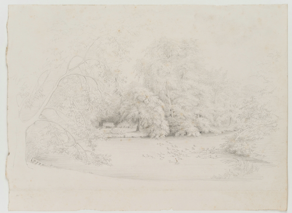Unknown (19th century), Potsdam Landscape Park, By the pond with ducks, c. 1830, Pencil