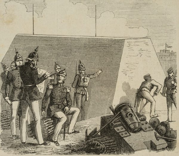 Unbekannt (19. Jahrhundert), Preußische Belagerungsingenieure mit Mörser, 19. Jahrhundert, Holzstich