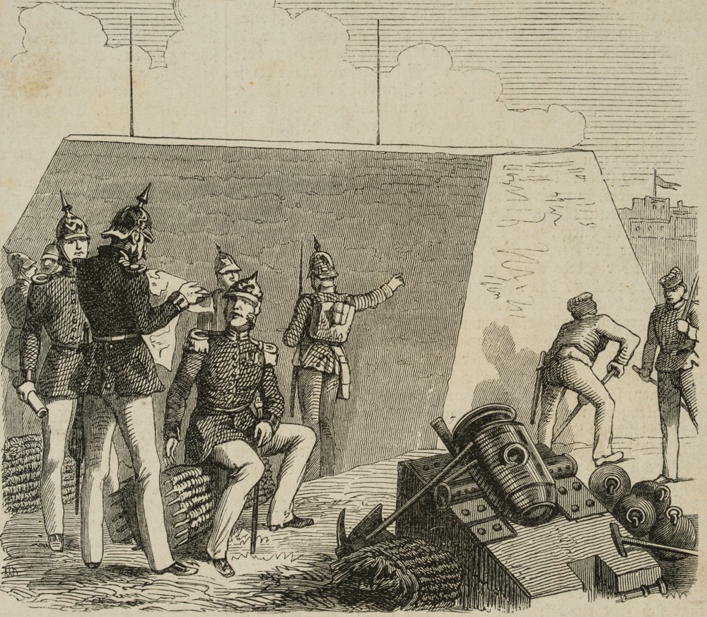 Unknown (19th century), Prussian siege engineers with mortar, 19th century, Wood engraving