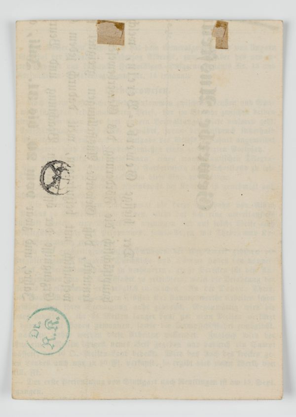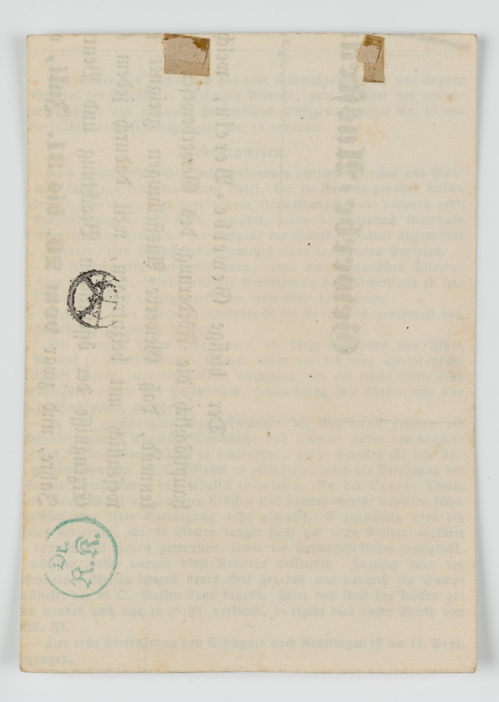 Verso sind Fragmente eines illustrierten Textdruckes zu erkennen sowie die Sammlungsstempel “Dr. R.K.” (ähnlich zu Lugt-Nr. 4641) und “EK” (Lugt Nr. 3549).