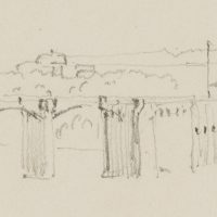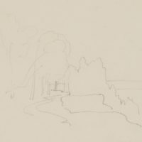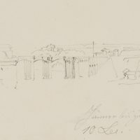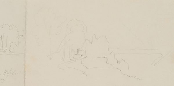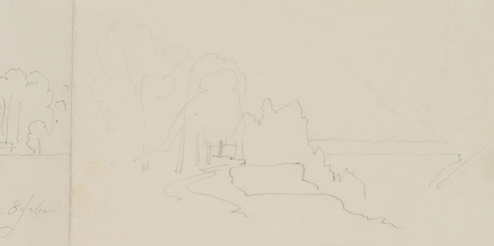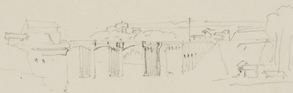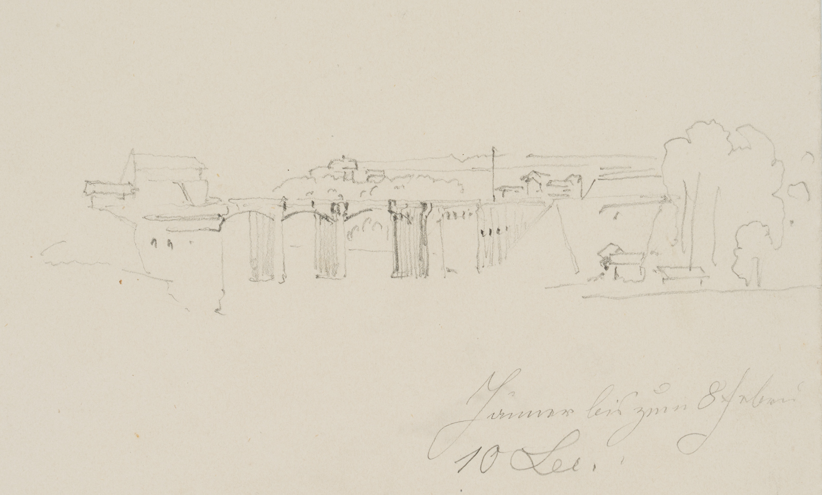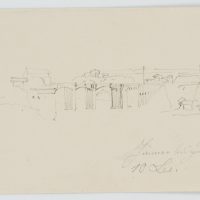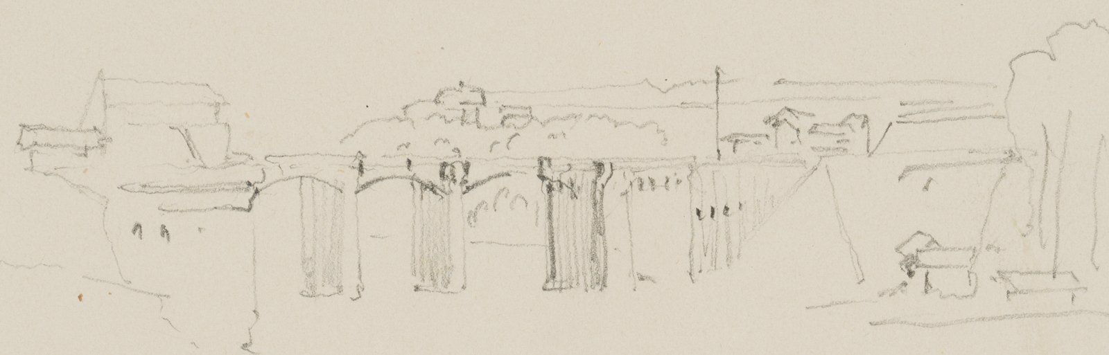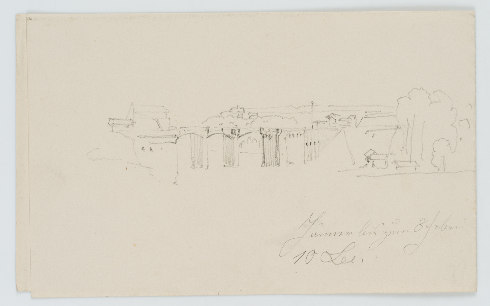 Unknown (19th century), Drawing from a travel sketchbook, landscape with bridge, c. 1850, Pencil