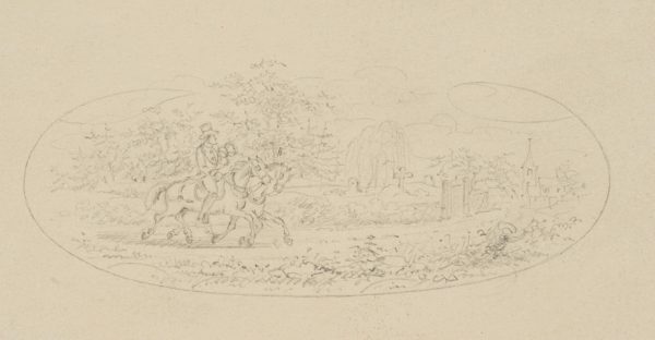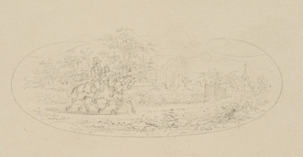 Unbekannt (19. Jahrhundert), Reitender Gentleman, Romantische Miniatur, um 1830, Bleistift