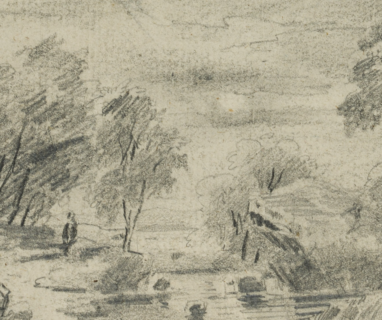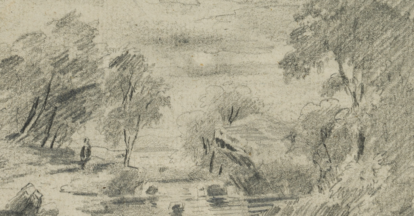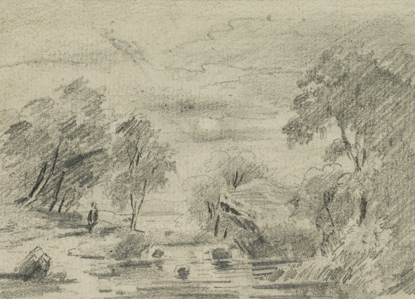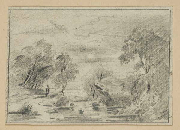 Unknown (19th century), Romantic River Landscape with Staffage Figure, 19th century, Pencil