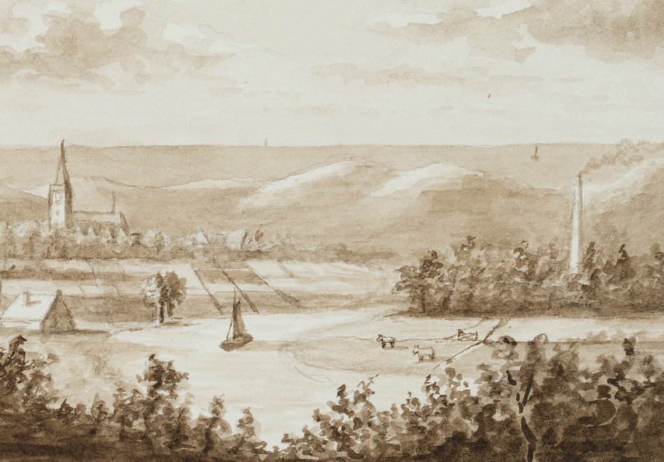 The work comes from the sketchbook of an unknown French artist who travelled in the Netherlands, Belgium and the Rhine region in the mid-19th century, capturing Dutch and Flemish landscapes in particular.