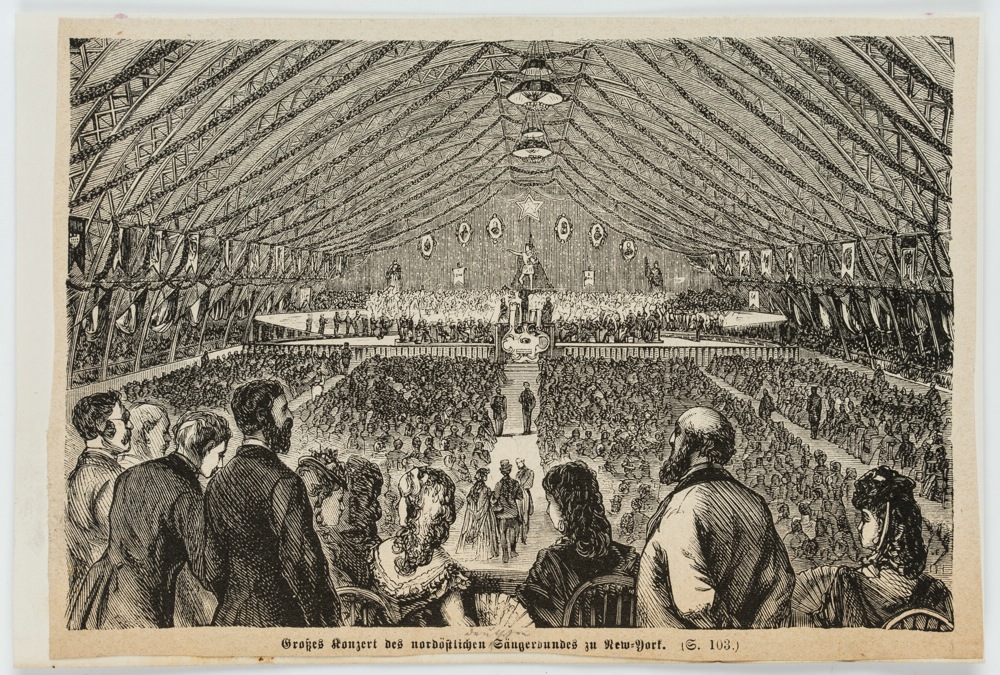 Unbekannt (19. Jahrhundert), Sängerfest des nordöstlichen Sängerbundes in New York, um 1870, Holzstich
