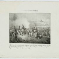 Unknown (19th century), Historical depiction of the Battle of Abukir with Napoleon on horseback in the midst of his troops in front of the captured enemy, 19th century, Lithography